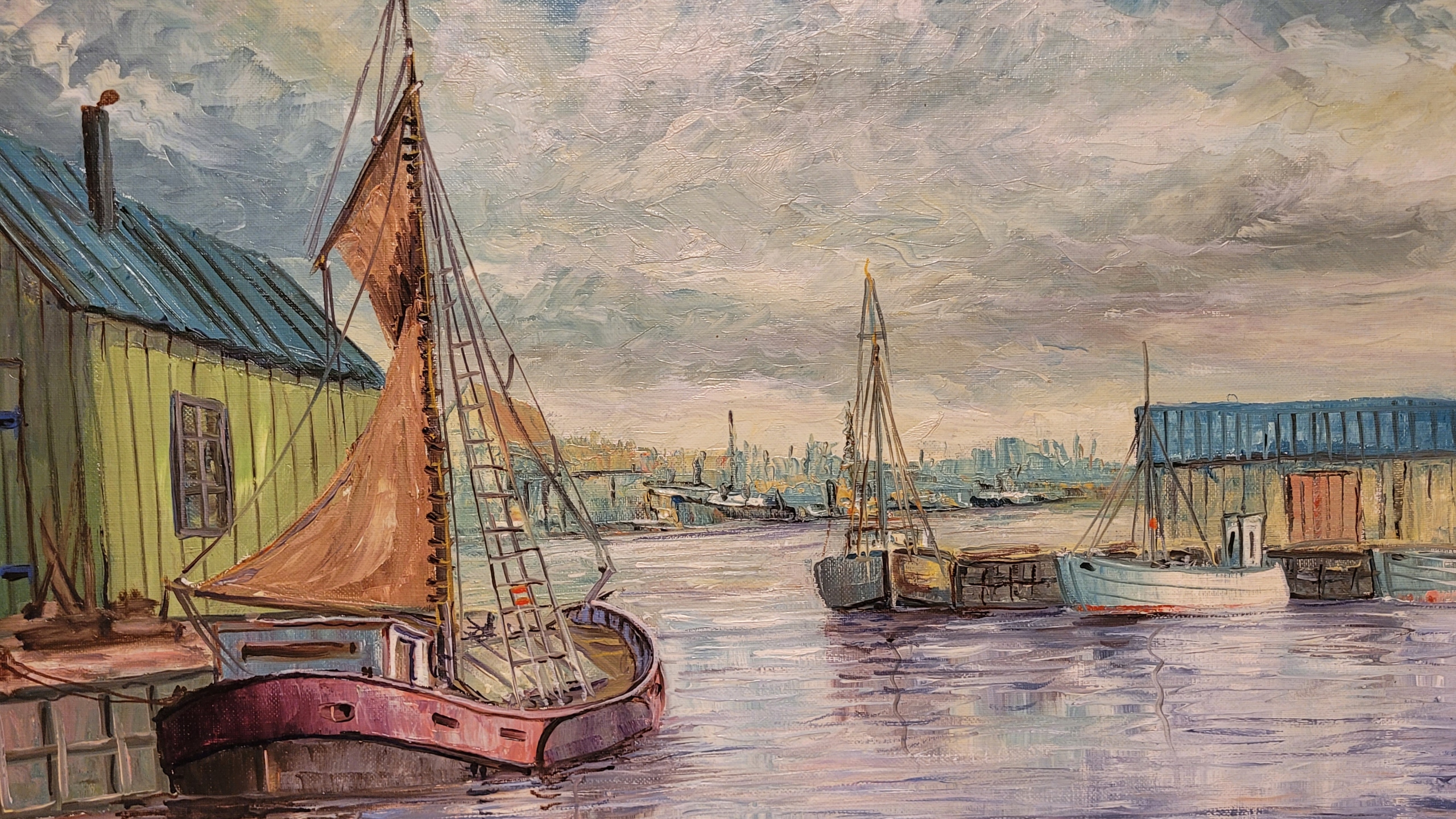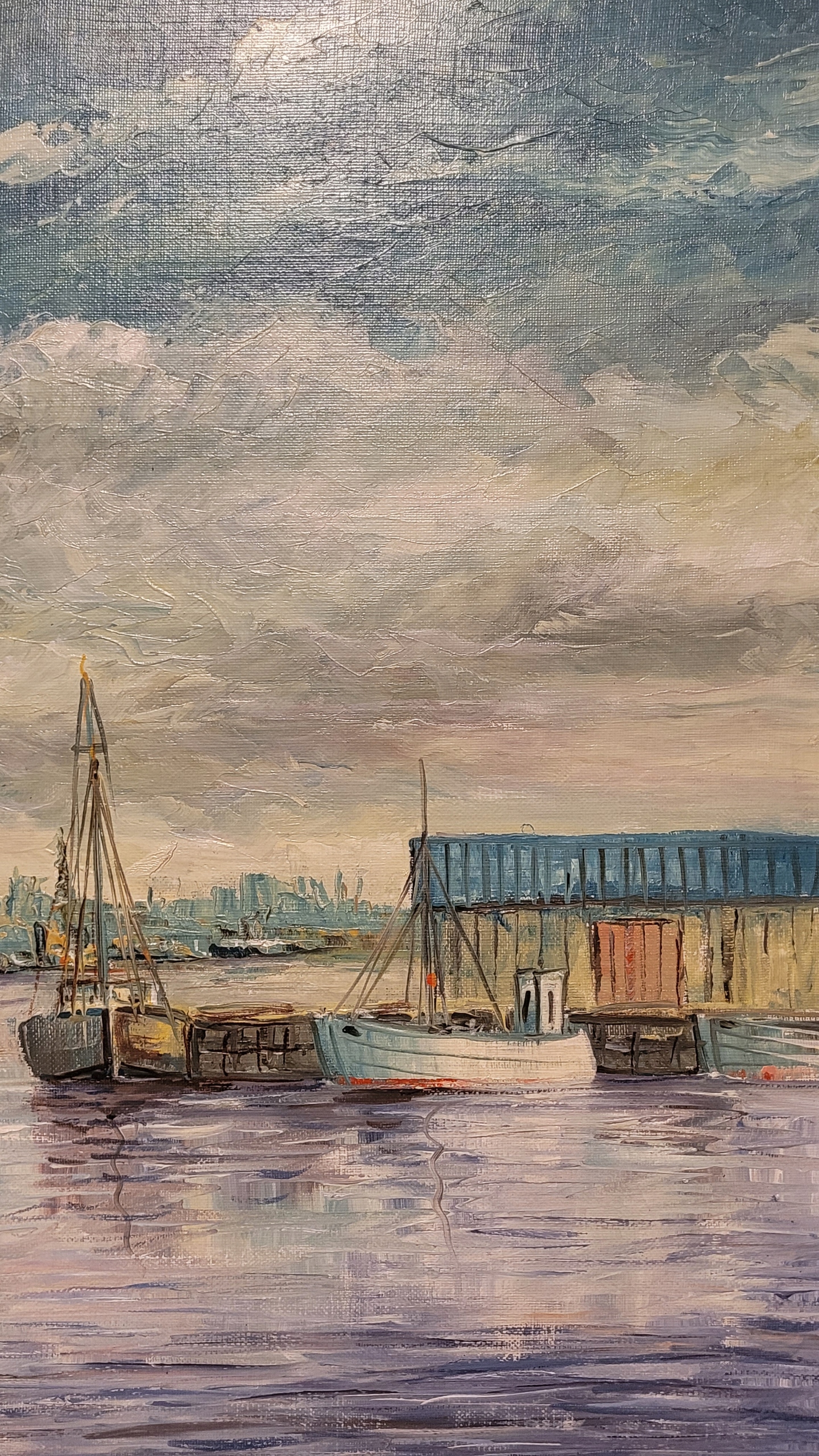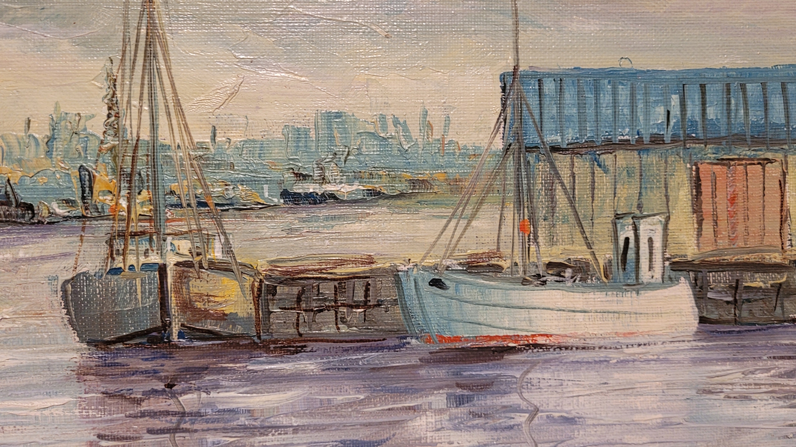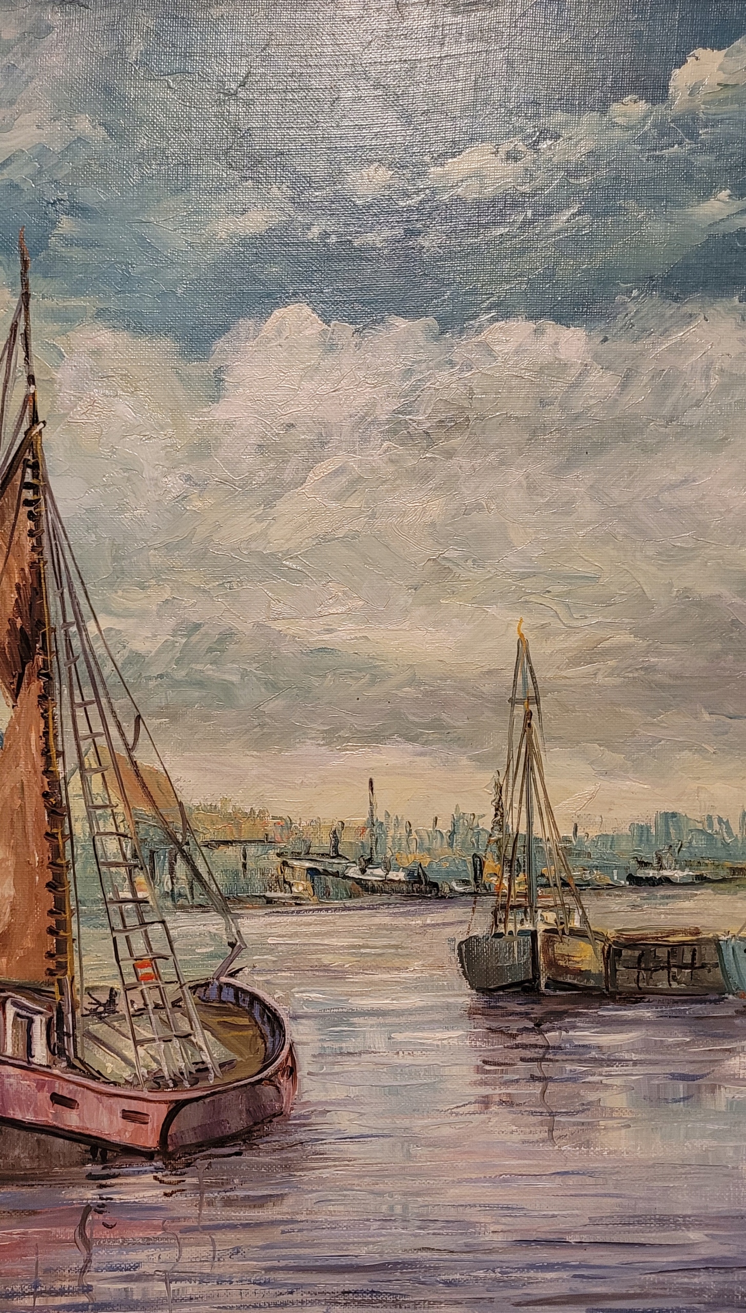 Продається красива старовинна картина маслом "ЧОВНИ В ПОРТУ".