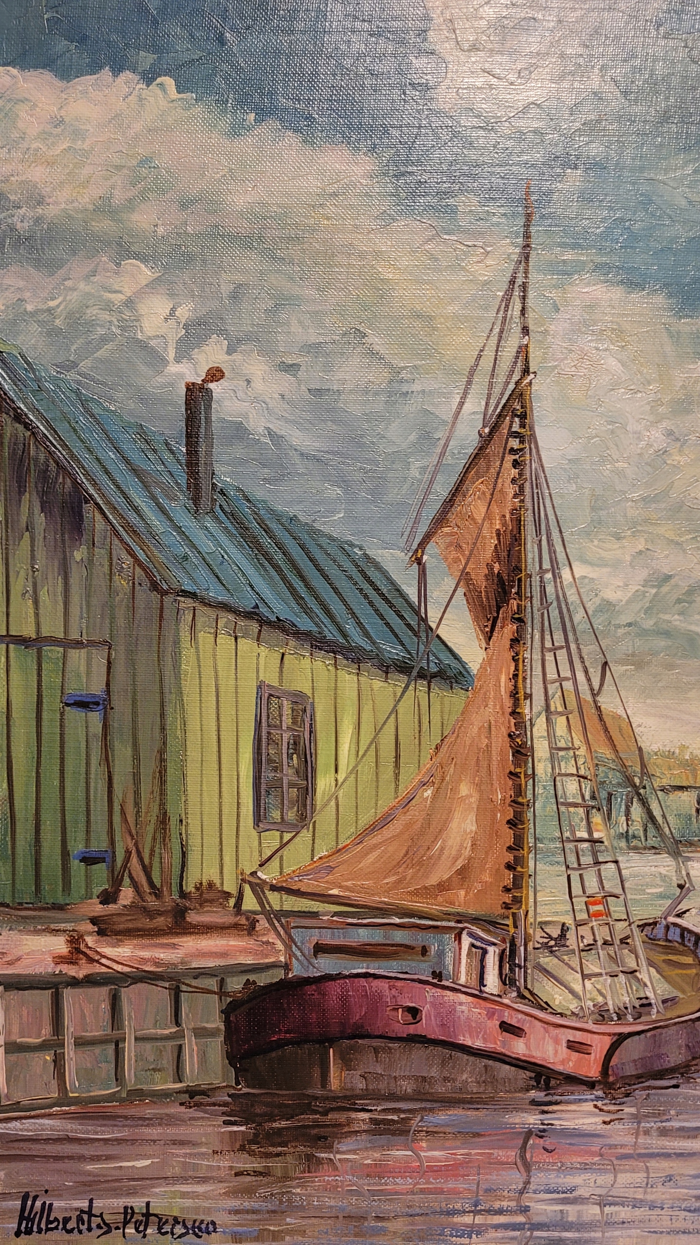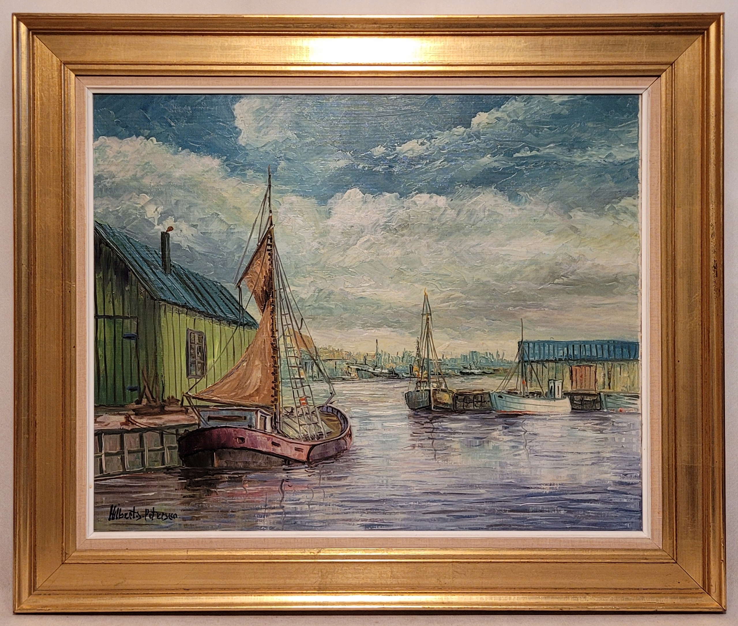 ГІЛЬБЕРТ СВЕНД ПЕТЕРСЕН (1912-) - «ЧОВНИ В ПОРТУ», красива картина маслом.