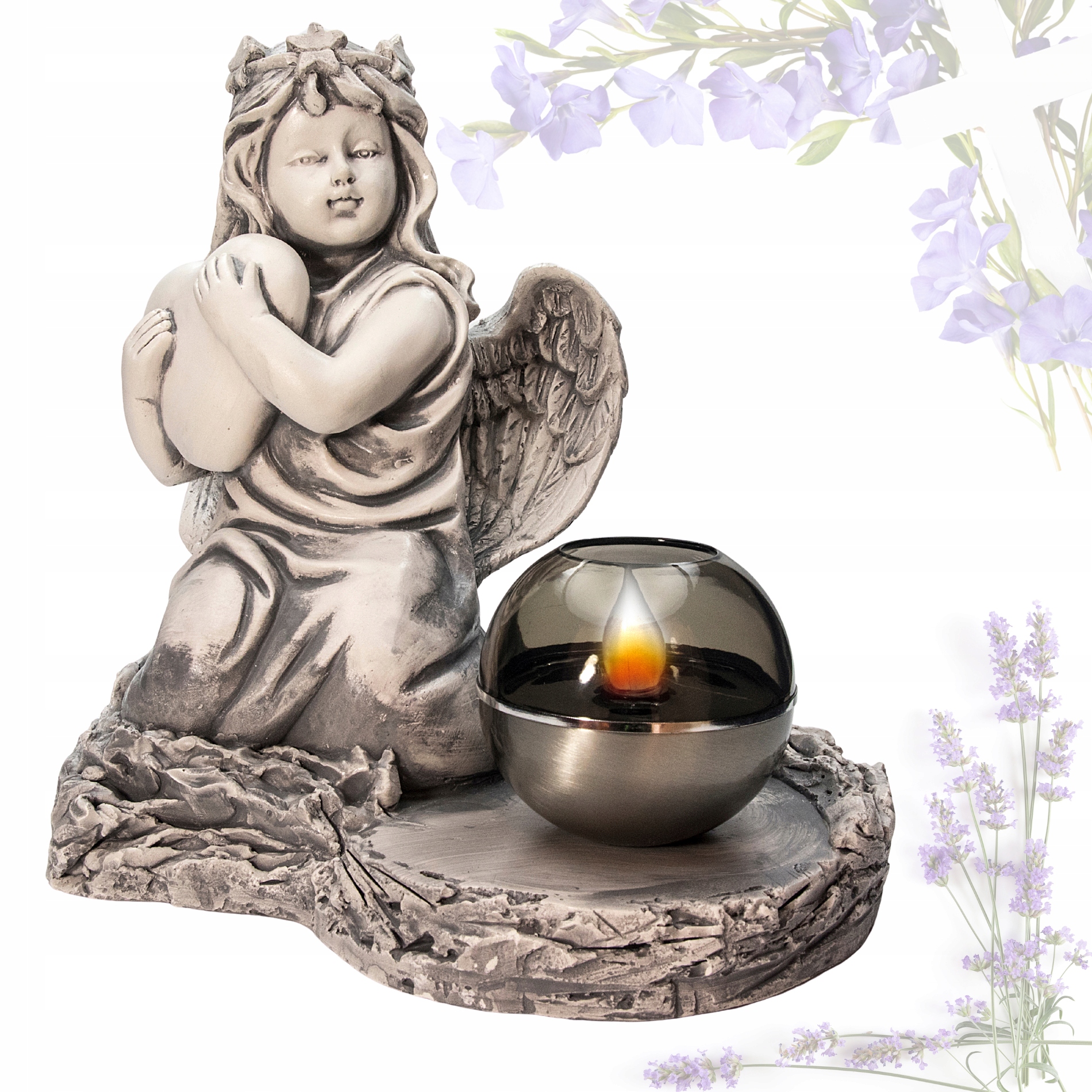 ⭐ гіпсова фігурка ангела сірого кольору з чорною сонячною лампою з кулею - надгробним каменем пам'яті ⭐