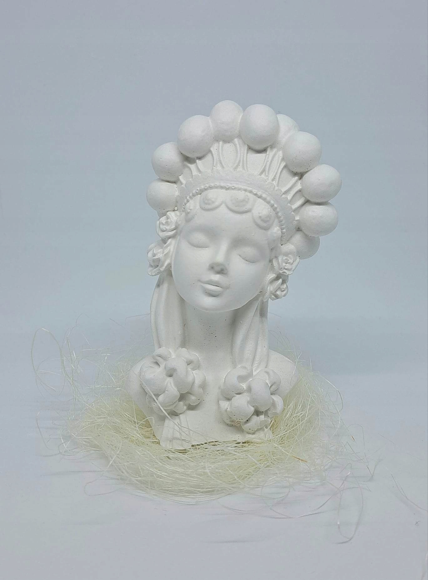 У вас вже є кілька ангелів із типовим волоссям і ви думаєте про щось інше? Ось МАРЛЕНКА з короною з помпонів на голові, а у волоссі трояндочки та банти. Дівочі риси обличчя і ніжна посмішка привернуть не один погляд. Стимулюйте свою уяву та створіть свій унікальний персонаж за допомогою бюста МАРЛЕНКА.