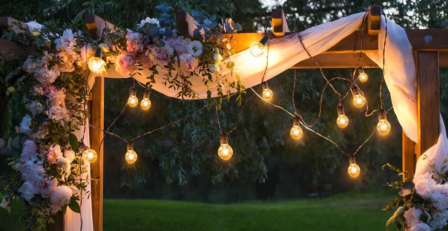 ◀ Наші садові лампи ідеально підходять для саду, балкона, альтанки, намету, гриля, ринку, кафе, парасольки, весільного декору.