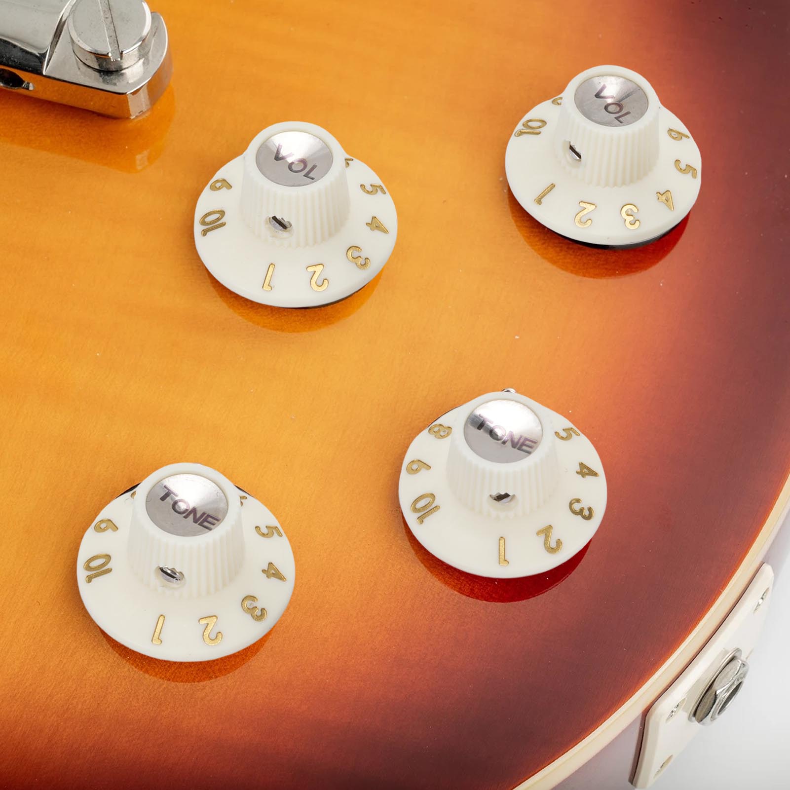2. Універсальна сумісність: призначена для вписування в ряд потенціометрів, відьомні ковпачки можуть вмістити потенціометри WAU з суцільних 1/4 дюйма, а також потенційні потенціометри WAU 6 мм (15/64 дюйма), включаючи як грубі, так і невеликі типи сплілів. Ця гнучкість робить їх придатними для різних застосувань в електричних гітарах, басах, підсилювачах та підставах ефектів.