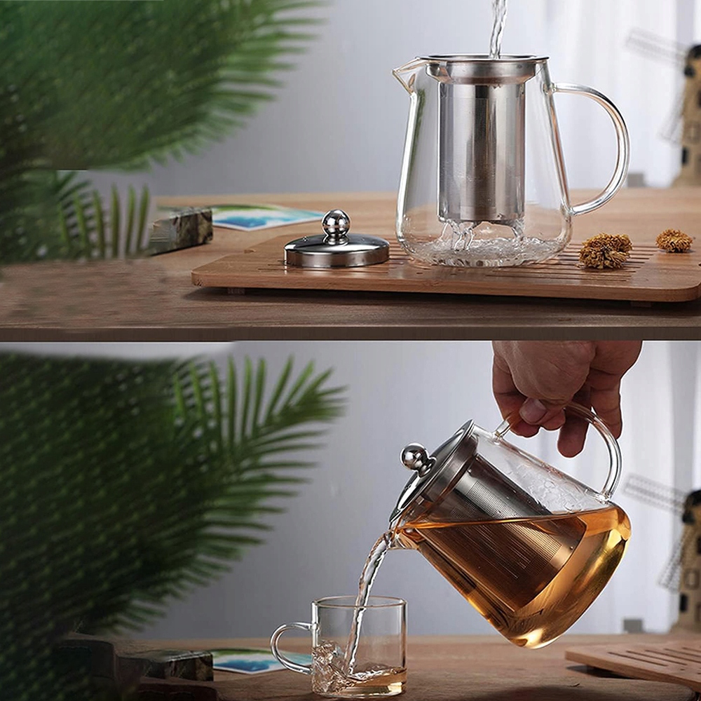 🔹 Скляний чайник, виготовлений із стійкого до тепла, бороцерального скла та нержавіючої сталі 304 , затверджених для контакту з їжею, Вульван у формі З букви V v. Скляна ручка забезпечує комфорт руки під час наливання чаю. , скляний чайник з чіткою травмою та елегантним виглядом. Унікальне поєднання простоти використання та естетики дозволяє розслабитися під час заварювання чаю. Вставка або видалення кришки підходить для чайного кошика. Ось чому чайник - це відмінний чайник для післяобіднього чаю. Час один дуже цінний. Завдяки цьому вільному чайнику ви можете насолоджуватися післяобіднім чаєм і приємно провести час, чисті, концентровані заливання та наливання без капання, означає не капати та капання під час елегантного чайного обслуговування. Вставка або видалення кришки підходить для чайного кошика. Ось чому чайник - це чудовий чайник для післяобіднього чаю.