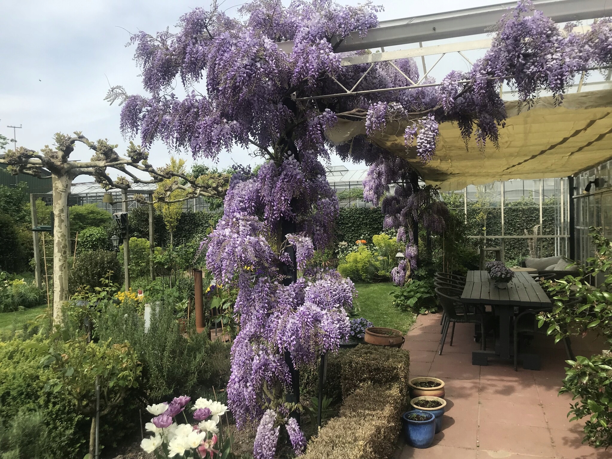 Wisteria sinensis, відома як китайська гліцинія, є вражаючою в'юнкою рослиною з Китаю. Характеризується швидким зростанням і здатністю досягати до 20 метрів в довжину. Його цінують за його вражаючі каскадні суцвіття від блакитних до фіолетових квітів, які з’являються ранньою весною, часто до того, як розпуститься листя. Ці квіти не тільки красиві, але й сильно пахнуть, що надає йому додаткового шарму.