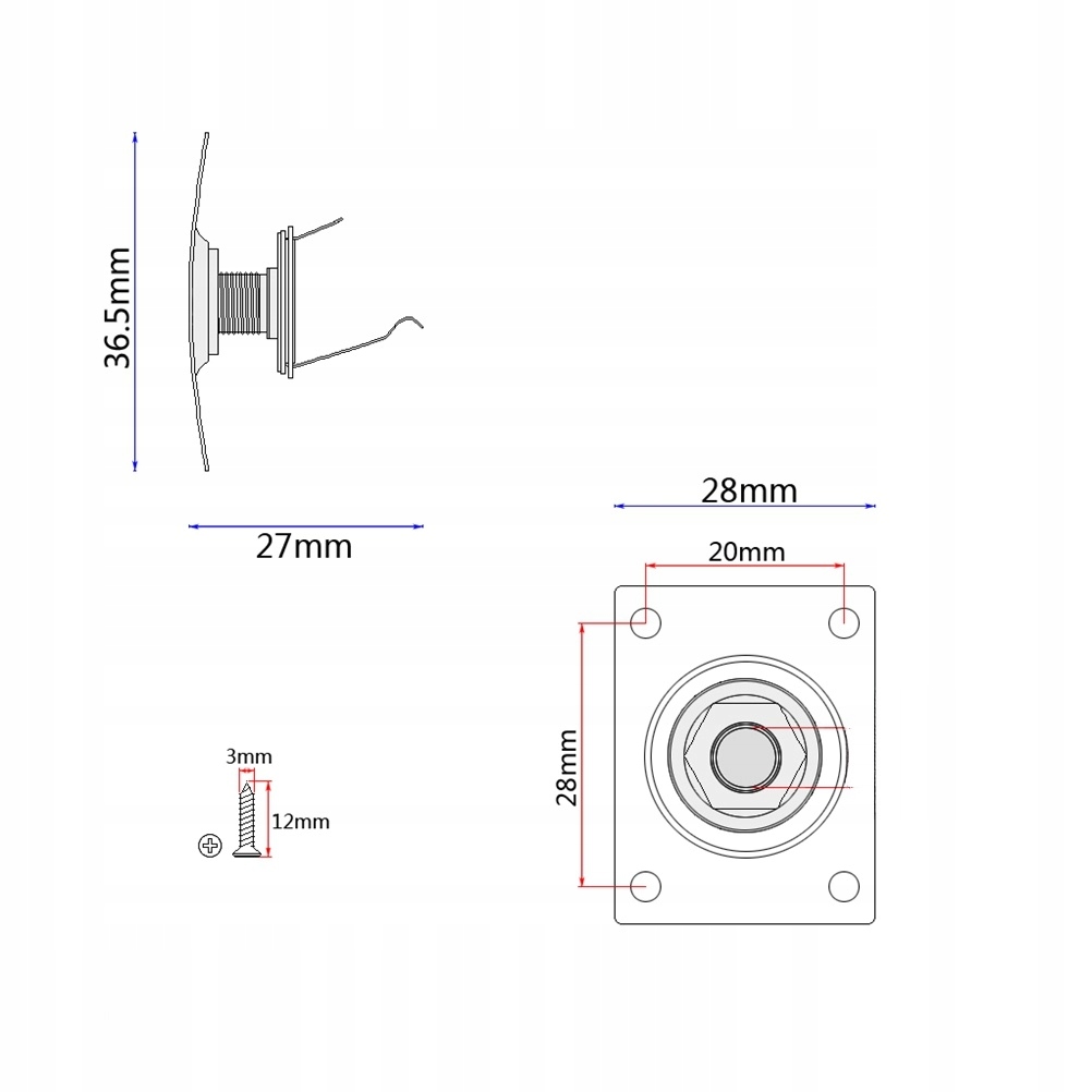 ✅ Гвинт зсередини в внутрішню частину: 28 х 20 мм