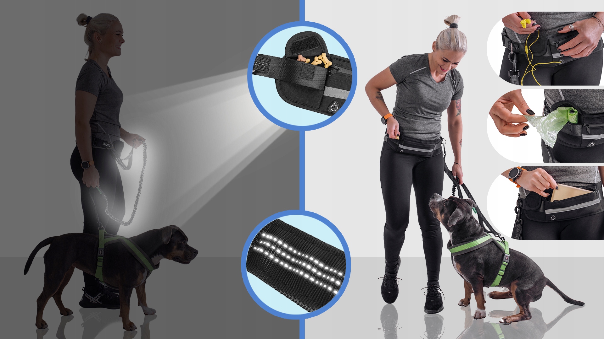 - ✔ стегна та собачий повідок можна використовувати окремо. Підключіть повідок до талії під час бігу, і у вас є обидва руки! У будь -який час ви відключите повідок від стегна, і ви можете використовувати як звичайний повідок