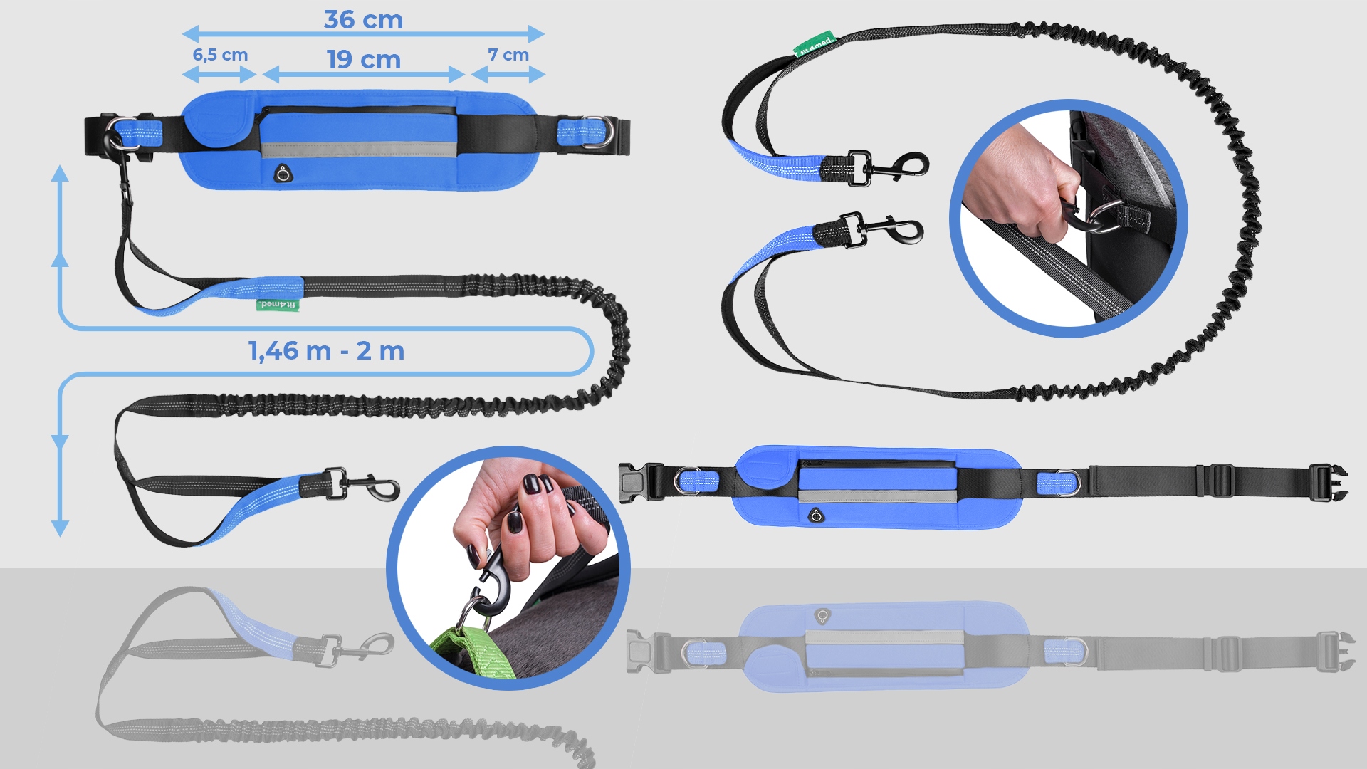 Спеціальна система викликає, що рядок з повідця розподіляється рівномірно на талії. Завдяки поясу руки залишаються безкоштовними