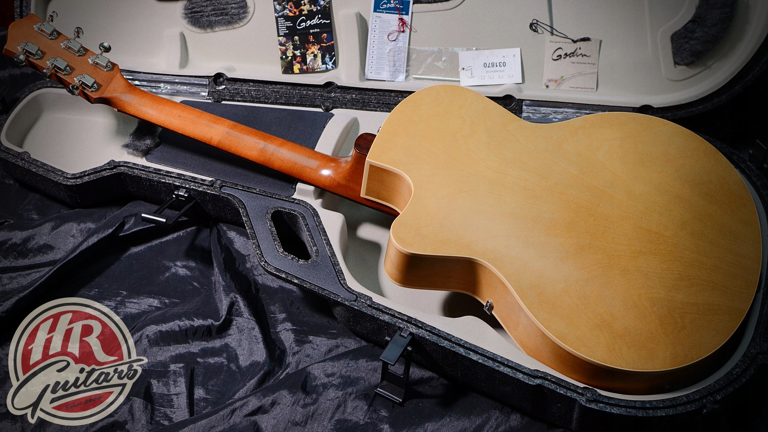 GODIN 5th Avenue CW Kingpin II Natural, зроблено в Канаді, гітара кілька років. Дуже хороший стан, повністю оригінал. Це гітара archtop без центрального блоку. Корпус зроблений з черешні, гриф - з клена, а гриф - з палісандра. У комплект входить оригінальний кейс Tric для цієї гітари. Інструмент грає та виглядає чудово, я щиро рекомендую його та запрошую спробувати.