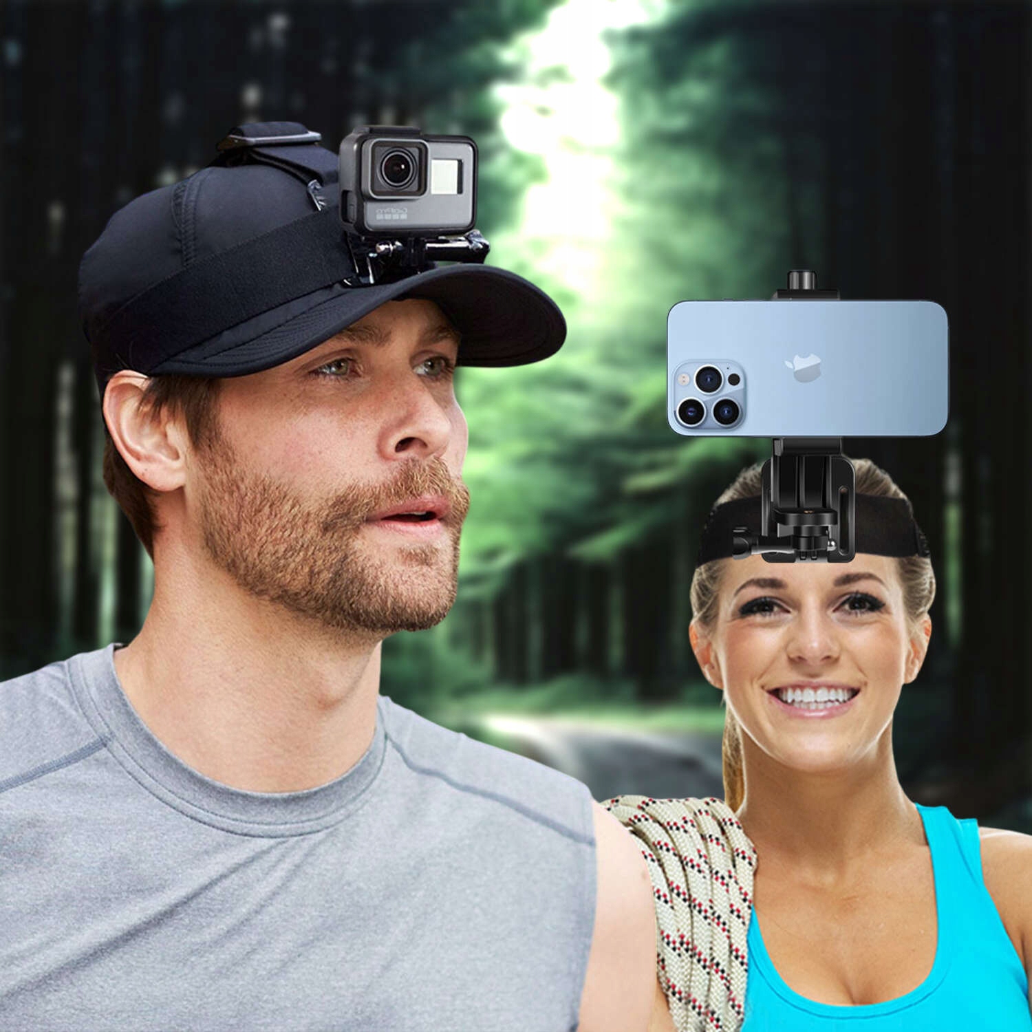 ✅ Тримач 2-в-1 для мобільного телефону та спортивної камери з пов'язкою на голову з нейлону та ABS.