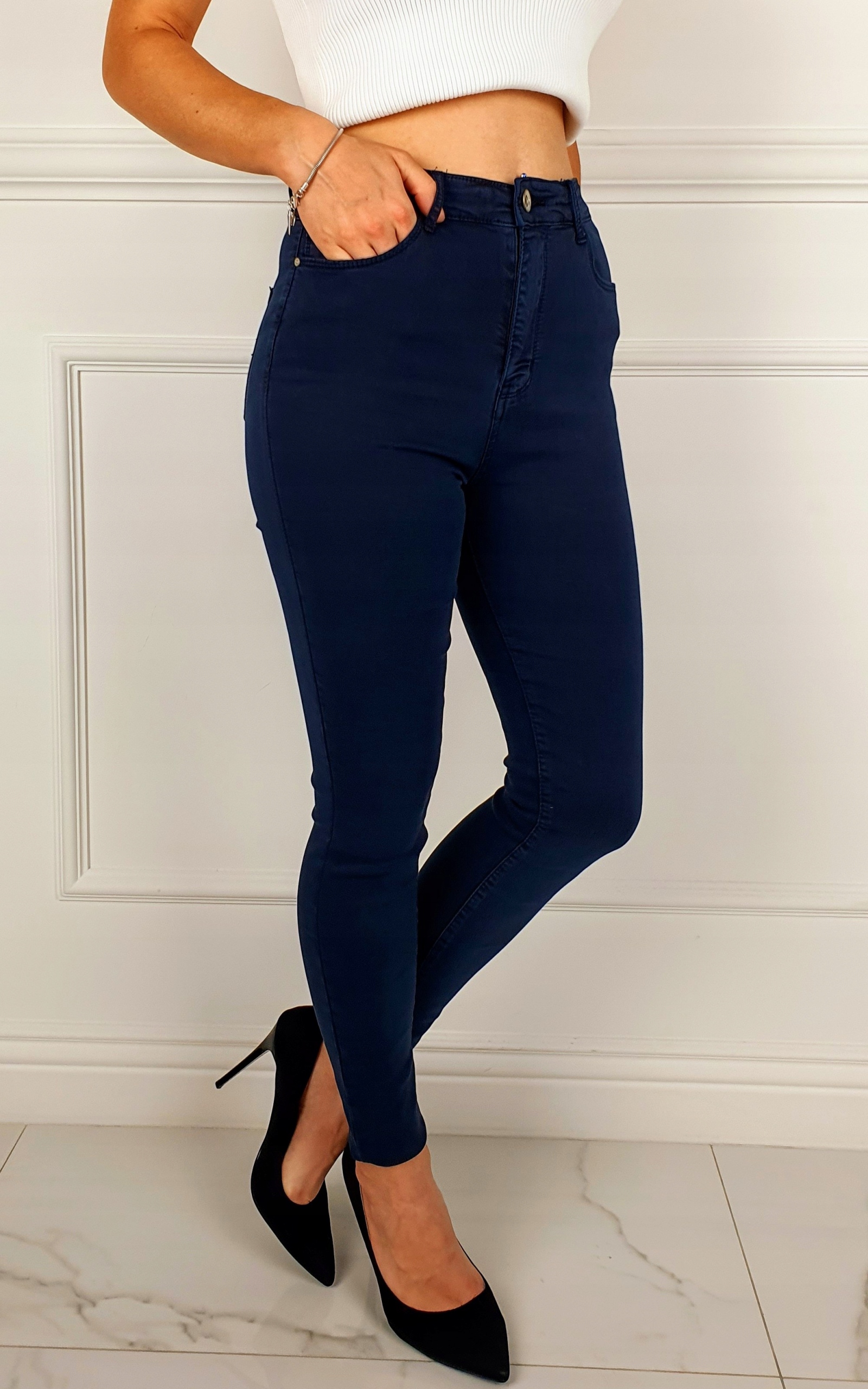 Великі класичні штани в кольорі темно -синій, мають високий стан чудово за спортивну взуття, але вони також працюють в поєднанні з Pins, завдяки їх уамшичній, завдяки їхній усьому. Гнучкий матеріал підкреслює жіночу фігуру. Штани оснащені, розтягуються. Підкресліть свої жіночі форми! Зробіть свій щоденний вигляд унікальним. Штани з обох боків мають кишені.