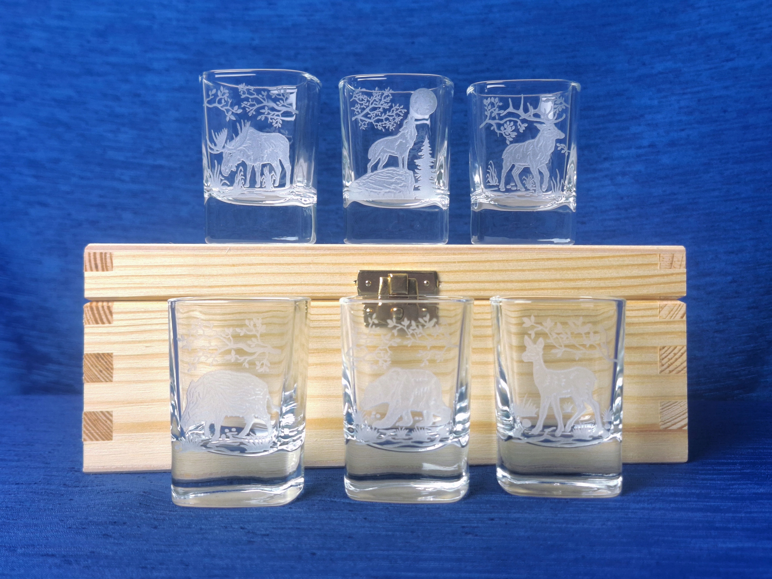 Просматривая «Водка 50 мл очков в деревянной коробке, украшенной охотничьей гравировкой», вы можете быть уверены, что данный товар из каталога «Бокалы и бокалы» вы получите в срок 5-7 дней после оплаты. Товар будет доставлен из Европы, проверен на целостность, иметь европейское качество.