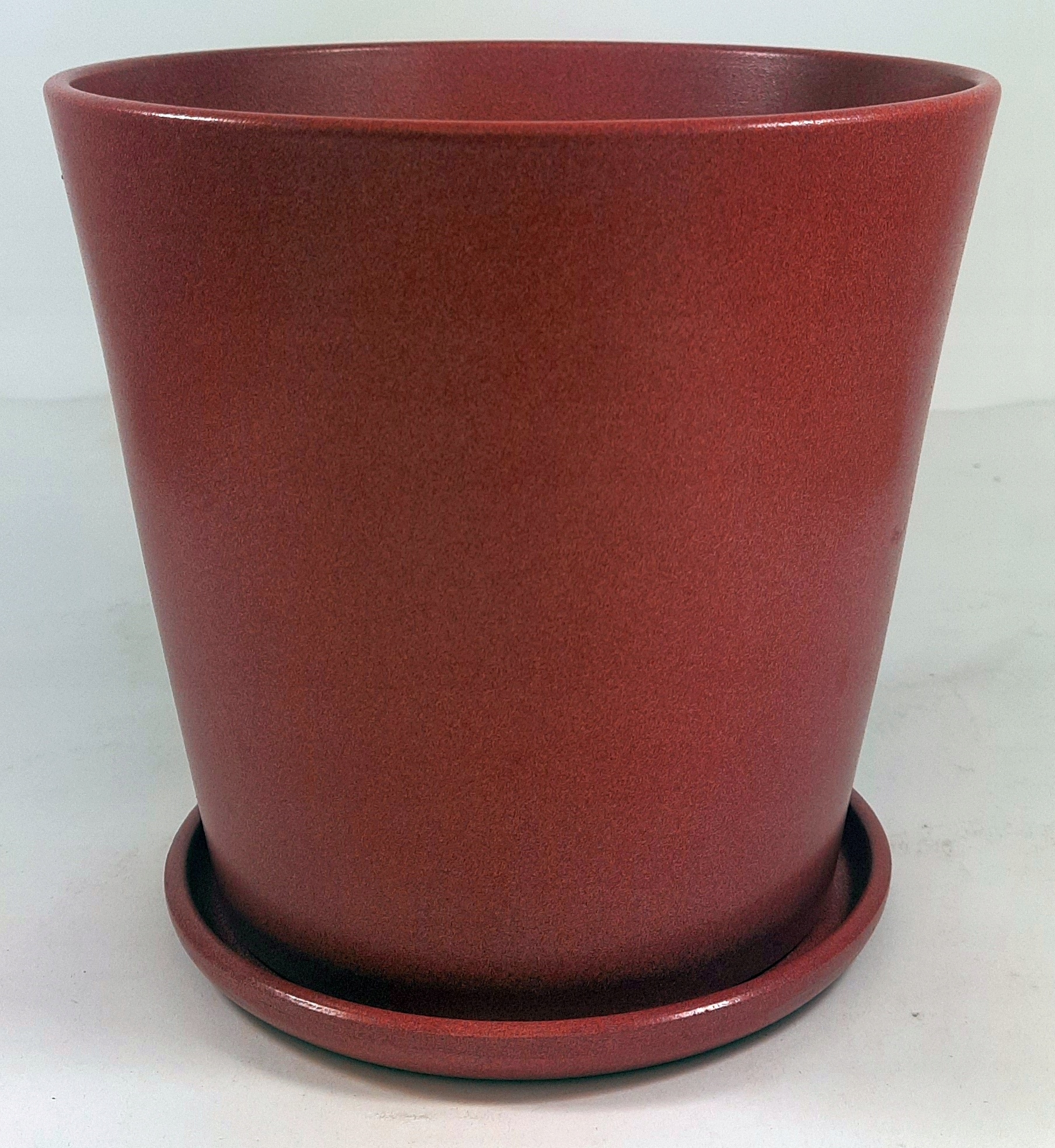 КОНІЧНИЙ ВИСОКИЙ ГОРЩИК, КЕРАМІЧНА КРИШКА З КРУГЛОЮ ПІДСТАВКОЮ, РОЖЕВИЙ, ЦЕГЛЯНИЙ ВІДТІНКУ, ПЛЯМКА