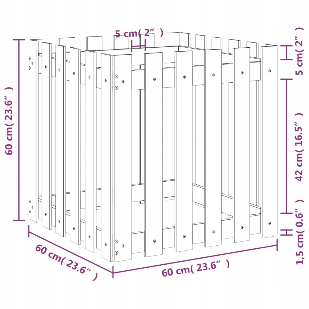 Садовий горщик з парканом, чорним, 60x60x60 см, соснова деревина