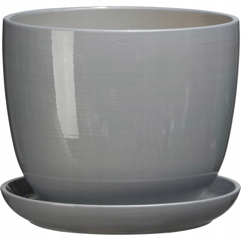 ГОРЗИК ДЛЯ КВІТІВ КЕРАМІЧНИЙ, СІРИЙ ГЛЯНЦЬ, ДІАМЕТР 14 СМ, ВИСОТА 12 СМ, ПІДСТАВКА