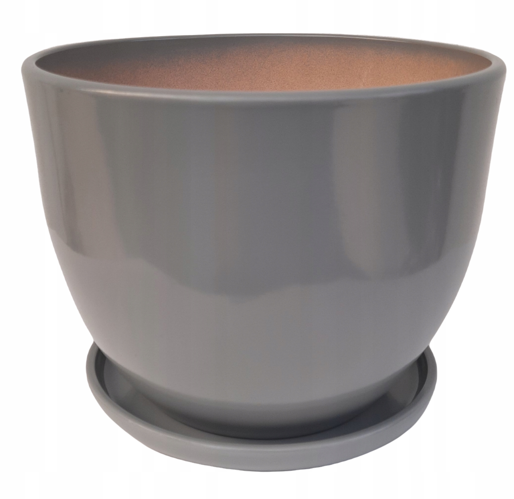 ГОРЩИК ДЛЯ КВІТІВ КЛАСИЧНИЙ З КРУГЛОЮ ПІДСТАВКОЮ, СІРИЙ, ГЛЯНЦЬ