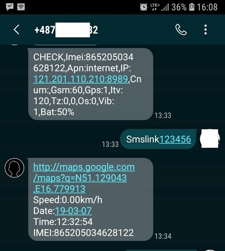 Ми також можемо надіслати відповідні SMS-повідомлення на SIM-карту пристрою, щоб перевірити його статус і отримати зворотне SMS-повідомлення з посиланням на Карти Google