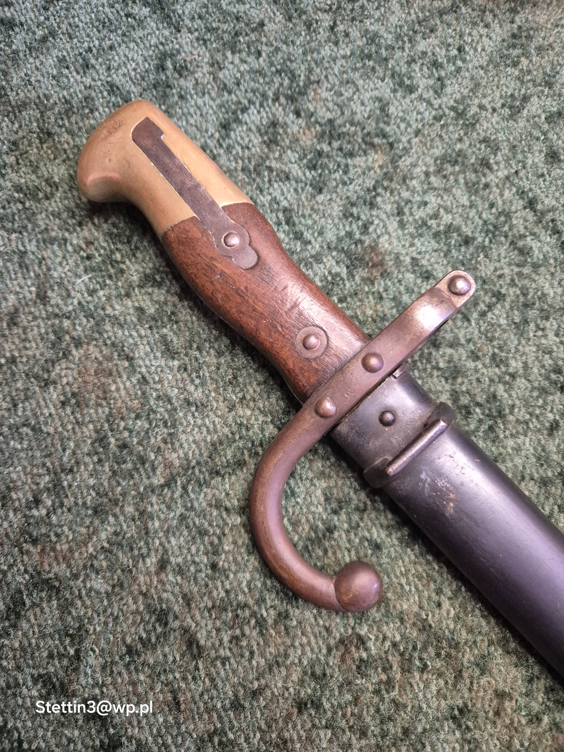 У бездоганному стані 100 % оригінального французького багнети WZ.1874 до Гра 1879 року. Виробництво св. Etienne. Функціональна засувка. Приємна піхва, сильні дроселі. Справжнє фото. Я рекомендую.