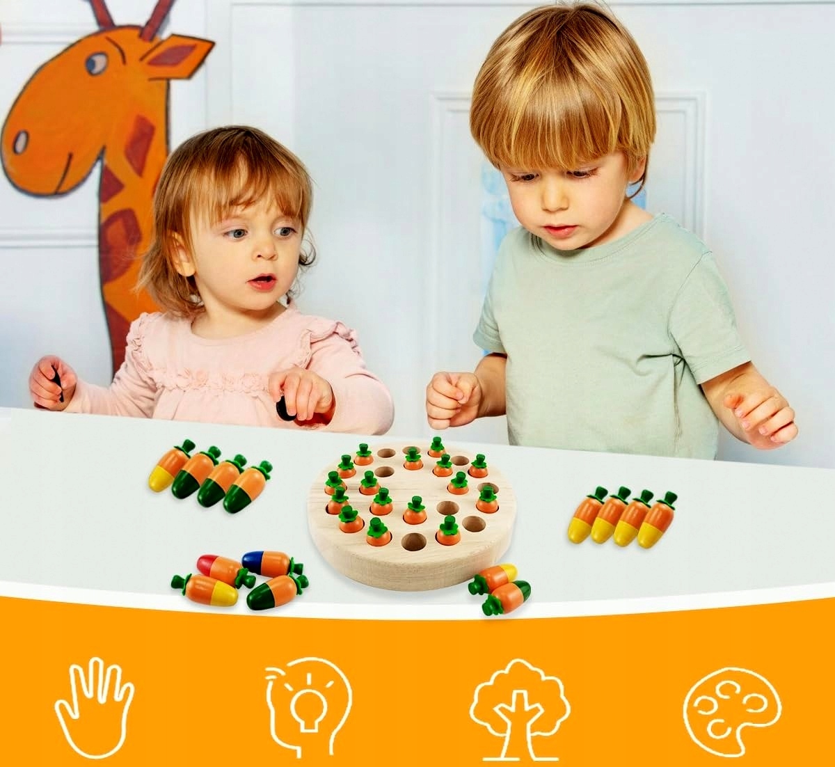 ГРА НА ПАМ'ЯТЬ ДЕРЕВ'ЯНА МОРКВА MONTESSORI Memory PUZZLE
