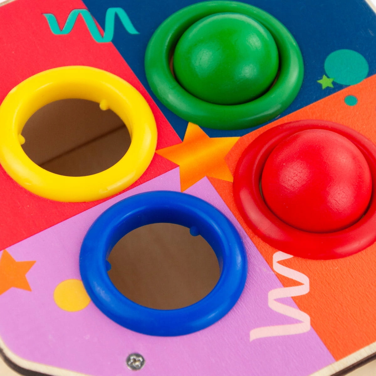 - Основа, кулі та молоток покриті нетоксичними фарбами.