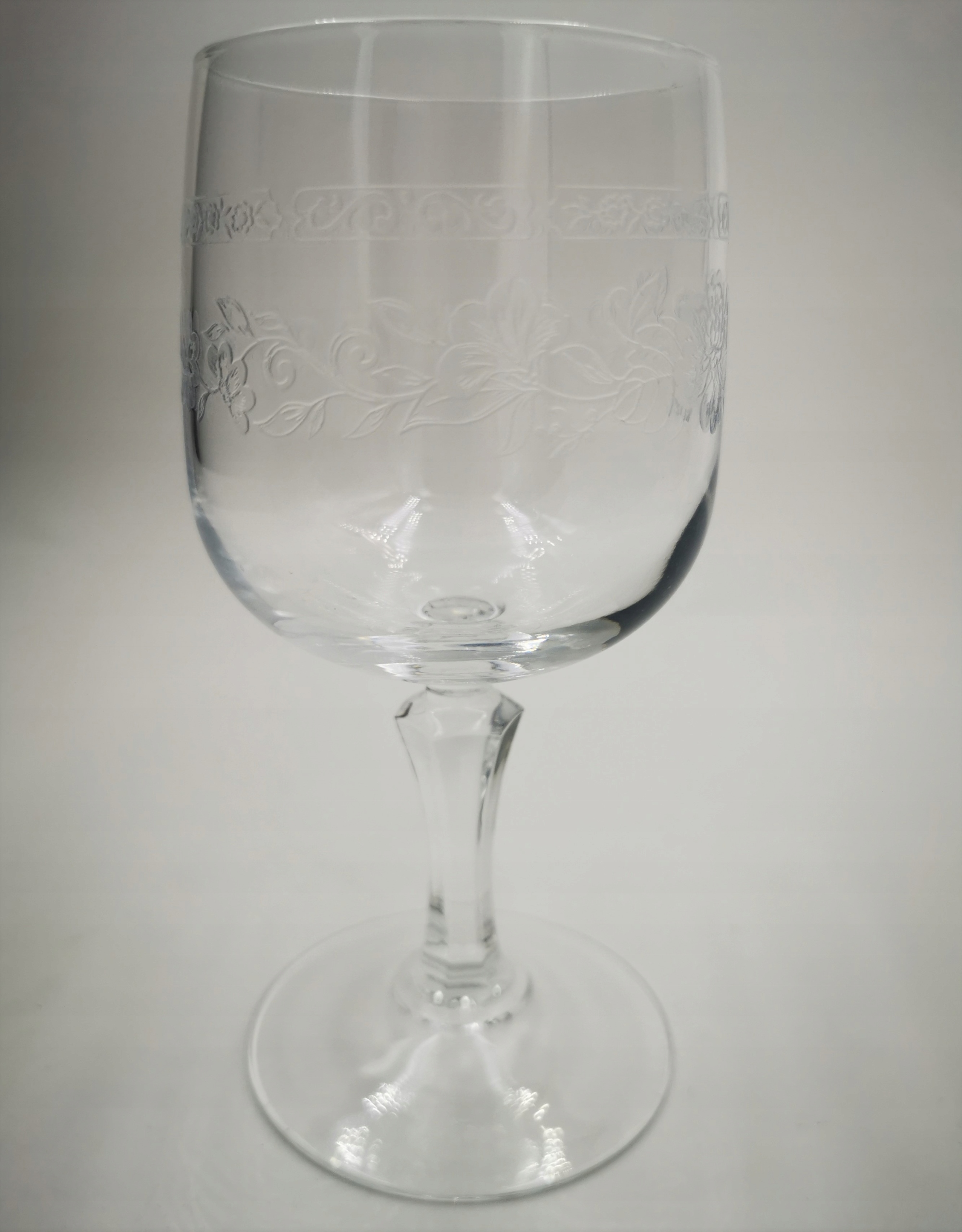 Представляємо гарні фужери для червоного вина з Франції. Келихи мають елегантну чашу, характерну для подачі цього виду напоїв. Їх безперечною перевагою є ніжна рослинна гравіювання, що прикрашає верхню окантовку келихів. Стакани походять з 20-го століття, і їх стан описується як дуже добрий і рекомендований.