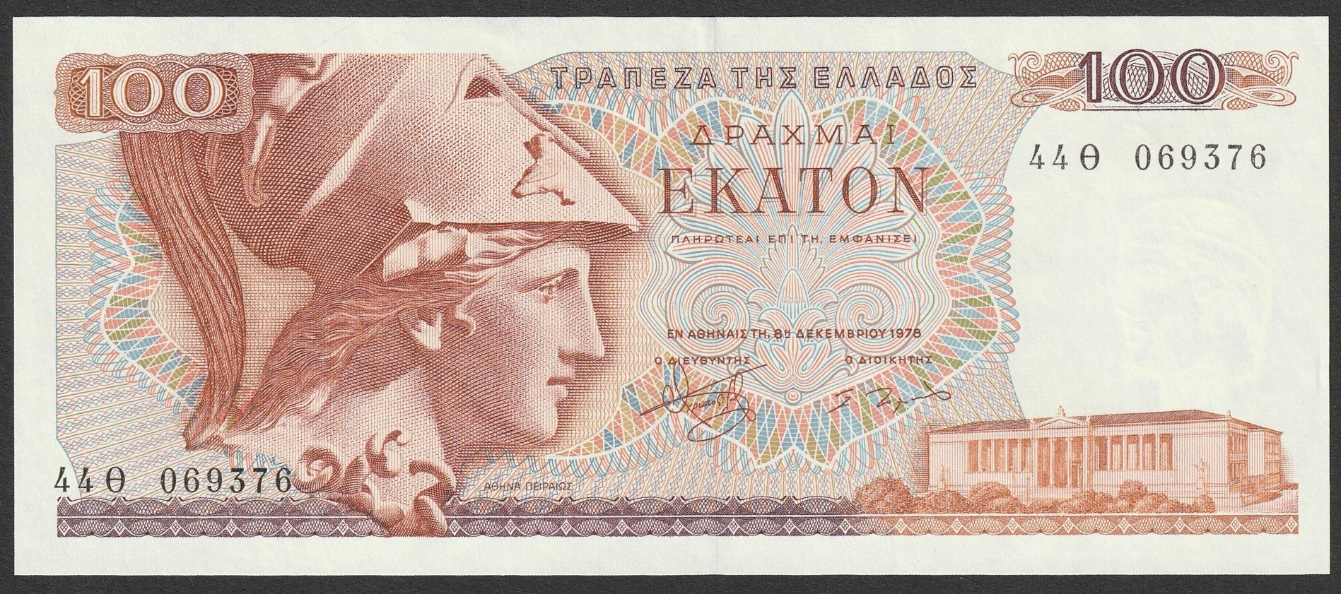 Grecja 100 drachm 1978 - stan bankowy UNC