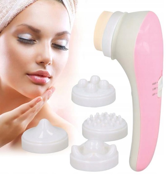 - Contains 5 attachments: 4 massage pads and one latex sponge