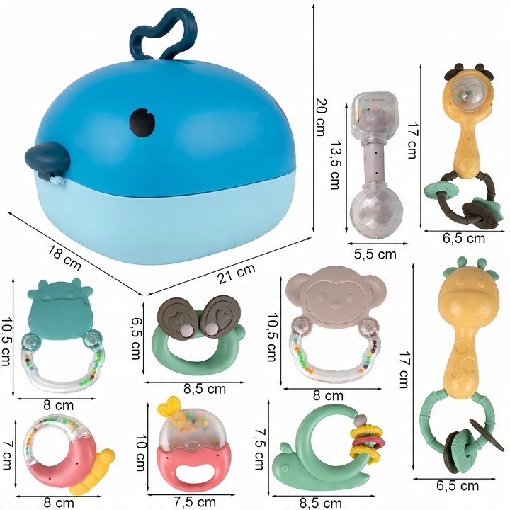 брязкальці мають гумові елементи, ідеальні для кусання , вони чудові під час прорізування зубів.