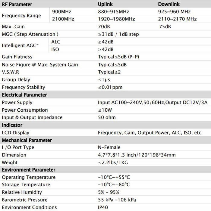 Пристрій має РК-дисплей із моніторингом стану в реальному часі, що робить його дуже простим у використанні. Завдяки інтелектуальній функції AGC, підсилювач автоматично вимірює силу вхідного сигналу та адаптує найкращі параметри системи до умов прийому в заданій зоні. Автоматичне регулювання підсилення дозволяє легко контролювати потужність між передавачем і підсилювачем, щоб підтримувати підсилення на оптимальному рівні, зменшити шум до нуля та не створювати перешкод для інших діапазонів. *Зауважте, що за межами вашого дому має бути принаймні 2-3 смужки на показаннях сигналу, щоб підсилювач забезпечив загальне посилення сигналу. Дальність дії пристрою також залежить від товщини стін і конструкції будівлі.