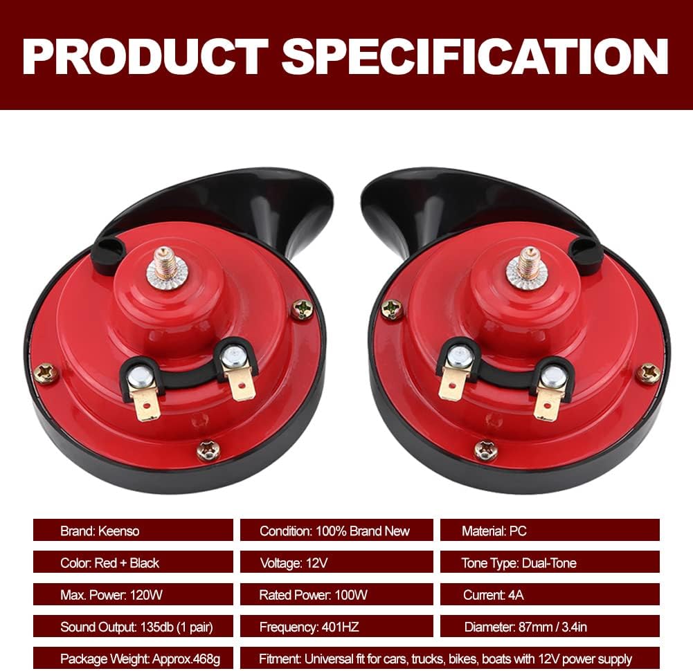 4 Надійність забезпечує чудовий досвід користувачів. Висока безпека: цей ріг нігтя має попереджувальний ефект, що збільшує безпеку керування автомобілем або керуванням та забезпечує безпеку під час руху. Легка установка: Цей динамік з великим обсягом оснащений гвинтами та кронштейнами, що полегшують установку, що дозволяє зручна та ефективна установка. Цей динамік з високим вмістом є надзвичайно практичним і ідеально підходить для пасажирських автомобілів, вантажних автомобілів, велосипедів та човнів з 12 В живленням. Набір містить 2 штуки