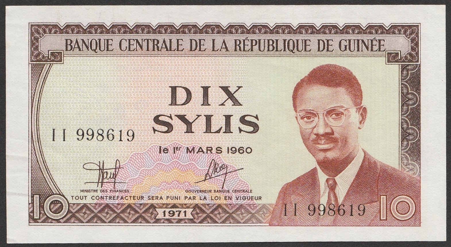 Gwinea 10 sylis 1971 - Patrice Lumumba - stan bankowy UNC -
