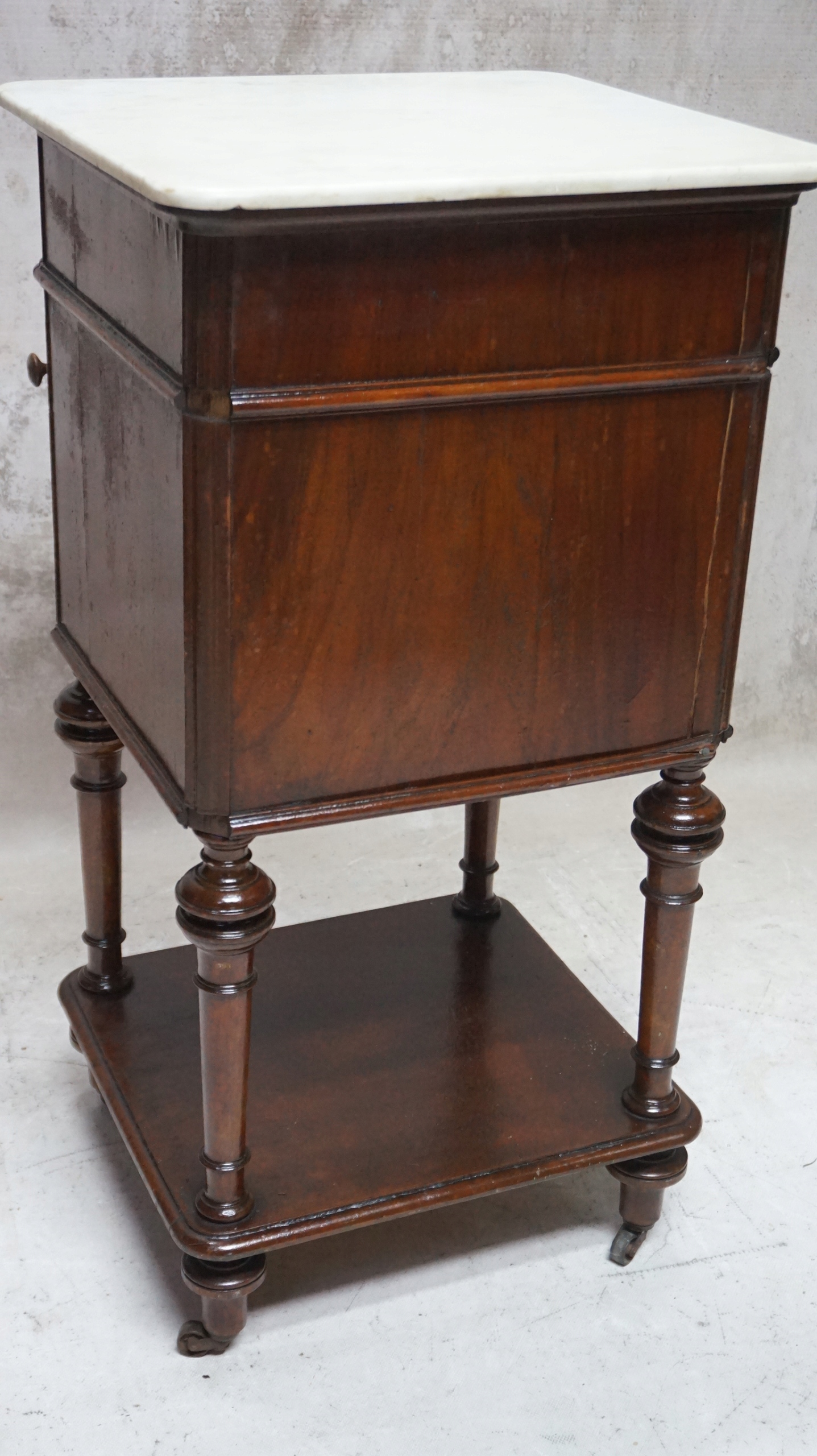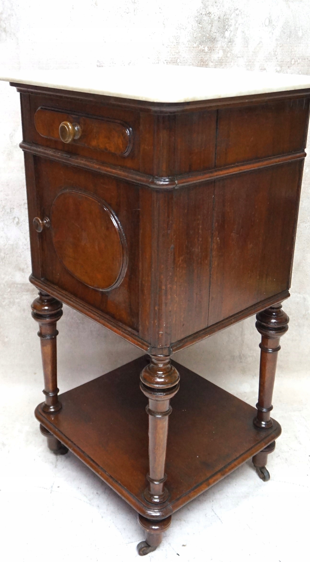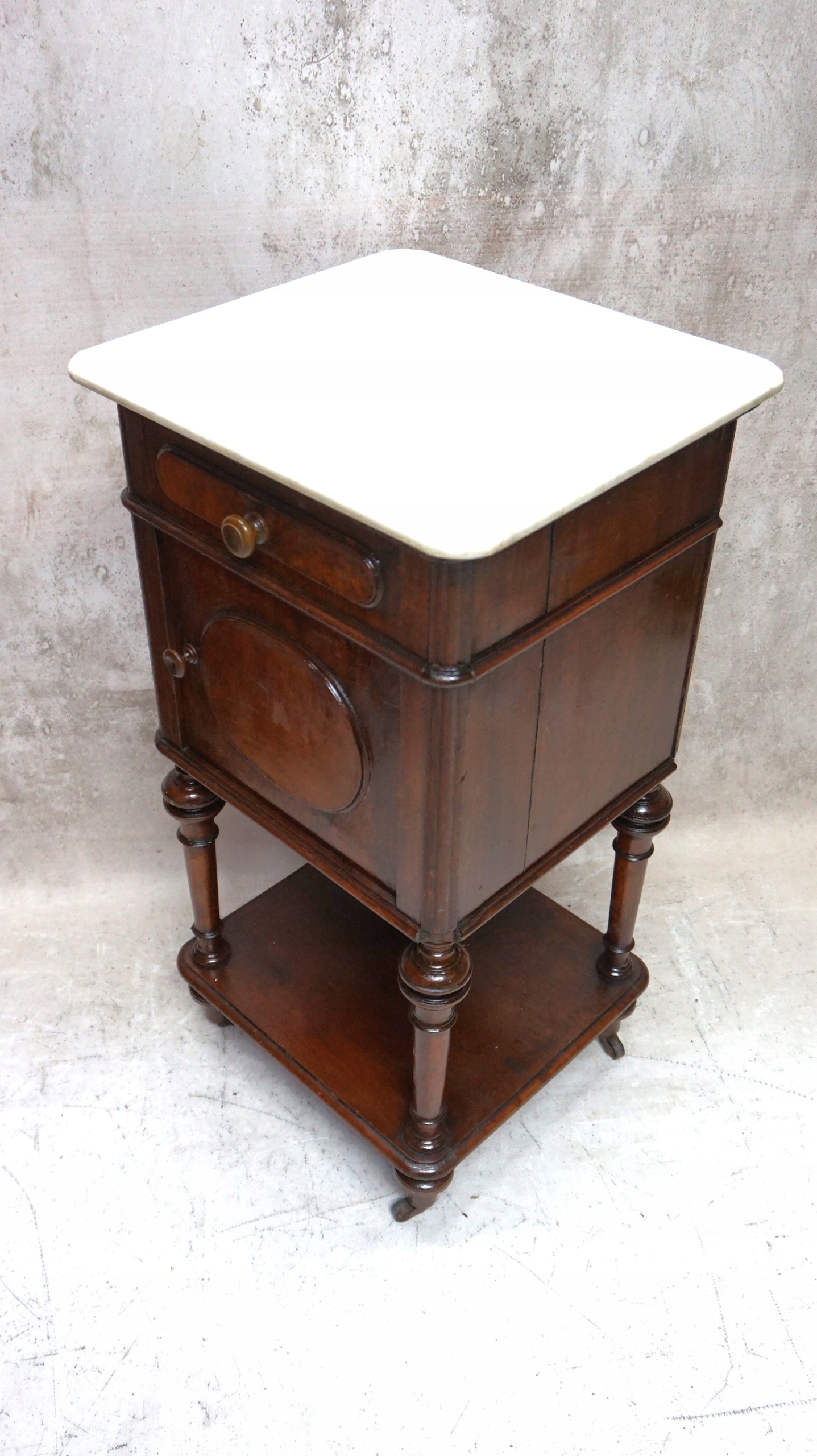 H-P STOLIK NOCNY Z MARMUREM NAKASTLIK SZAFKA na kółkach- antyk