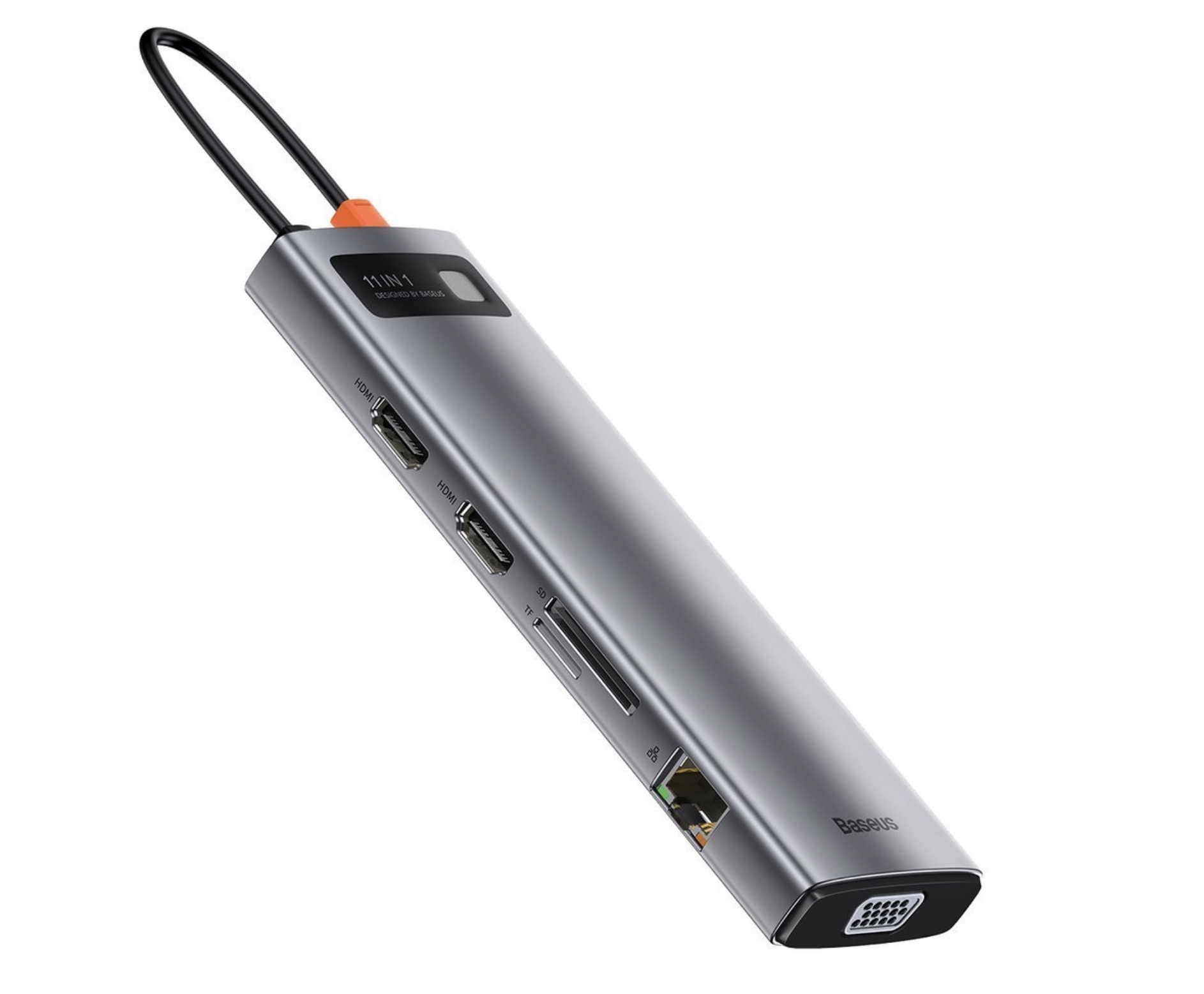 У вашому ноутбуці занадто мало портів? Хочете розширити його можливості? Це простіше, ніж може здатися! Багатофункціональний концентратор 11-в-1 від Baseus оснащений 3 портами USB 3.0, 1 USB-C, 2 HDMI, 1 VGA, 1 Ethernet і 1 аудіороз'ємом 3,5 мм. Він також має слоти для SD і TF карт. Він забезпечує швидку передачу файлів зі швидкістю до 5 Гбіт/с і дозволяє відображати зображення в якості до 4K. Він також підтримує швидку зарядку 100 Вт PD через порт USB-C. Він також відрізняється неймовірно ефективним відведенням тепла і широкою сумісністю. Переконайтеся самі, що варто використовувати один порт комп’ютера, щоб отримати натомість 11!