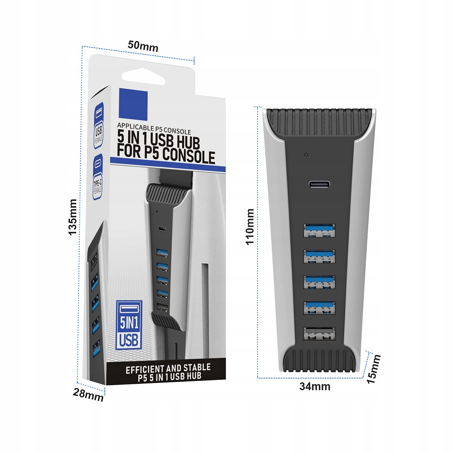 Ідеальний пристосування- Цей USB-концентратор призначений для консолі PS5, він може розширитись до 4 портів USB 2.0, 1 USB-порту та 1 USB C.