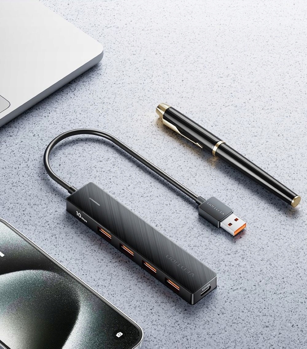 Hub Vention - це суцільний інструмент для розширення можливостей кожного комп'ютера або ноутбука. Це дозволяє негайно розширити один USB -порт до чотирьох незалежних портів USB 3.2 Gen 2 з ємністю 10 Гбіт / с. Завдяки компактному, родючому дизайну та надійним компонентам, пристрій працює як в офісі, так і під час мобільної роботи з ноутбуком, планшетом чи смартфоном. Одночасно підтримує багато пристроїв, забезпечуючи швидку передачу даних та стабільну роботу.