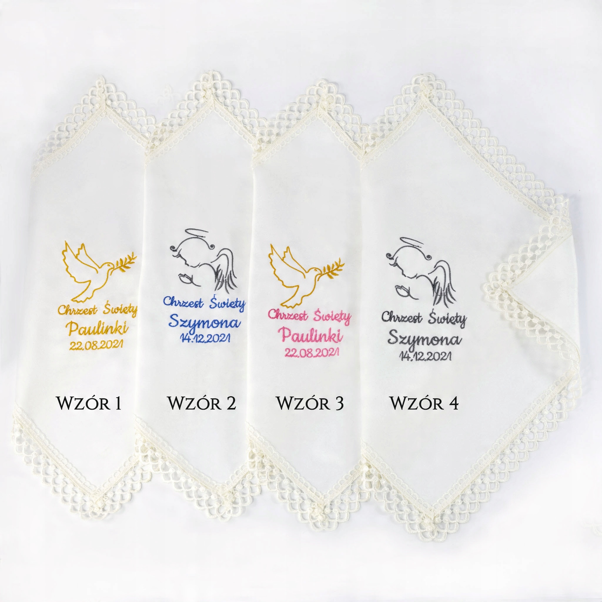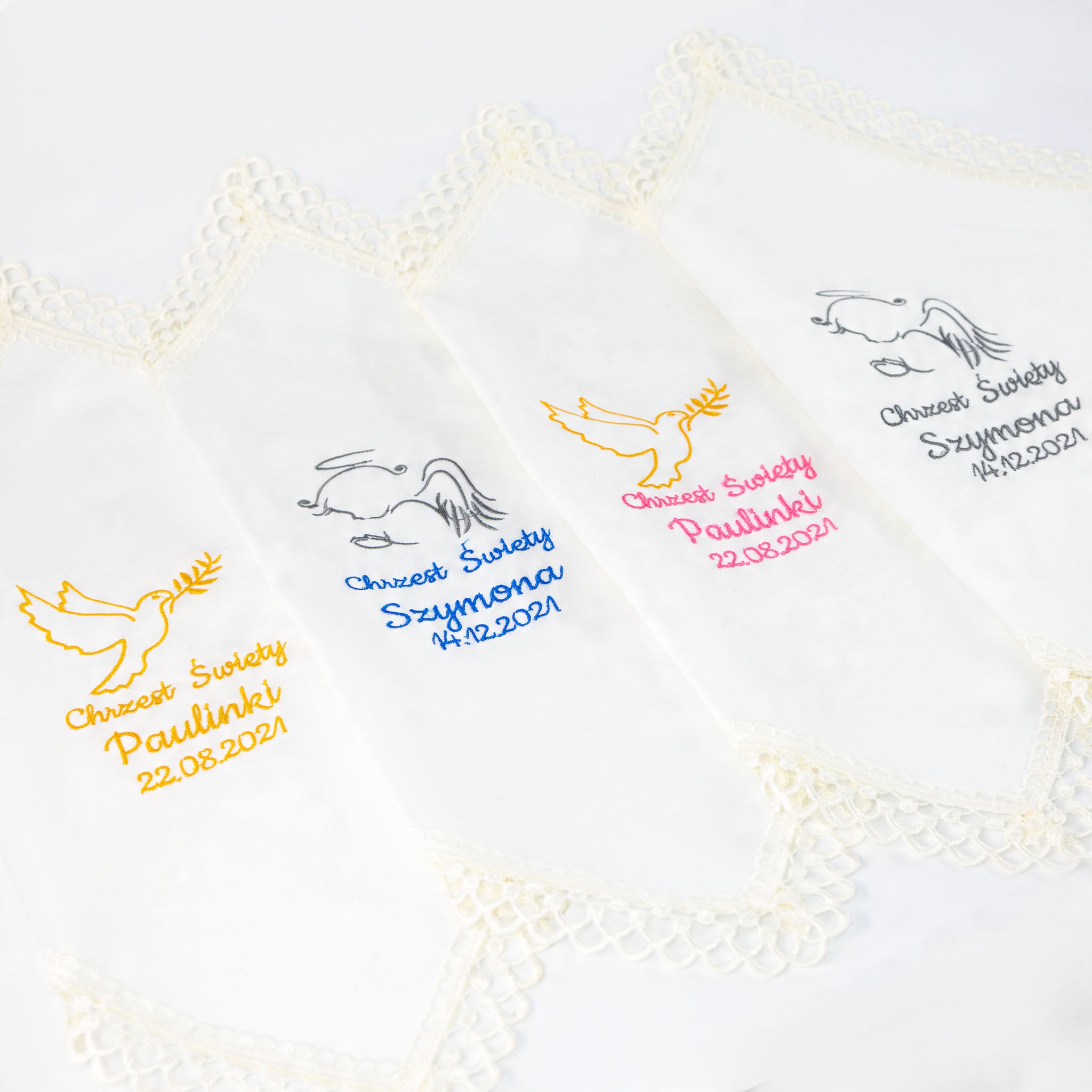 - розміри шалі: 35x35 см прикрашена мереживом з вишитим іменем дитини