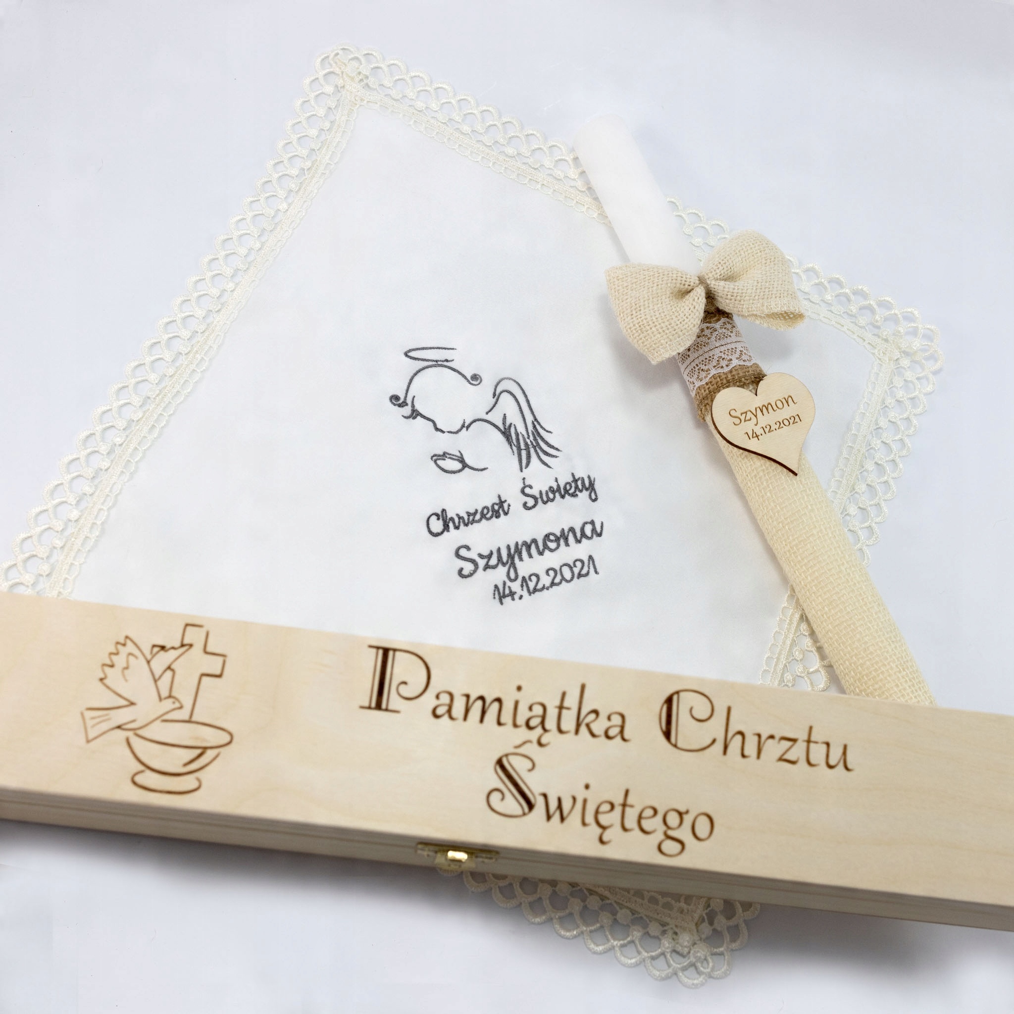 - дерев'яне серце з іменем дитини та вигравірувана дата хрещення