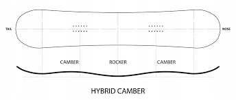 Цей тип профілю може мати дві форми. Ми можемо мати справу з гібридами, які мають рокер посередині дошки та прогин під кріпленнями, або навпаки, тобто провал посередині дошки та рокер під кріпленнями. Перший варіант набагато більш поширений і в різних компаніях називається по-різному. Наприклад, Barton називає цей тип профілю Flying V, Lib Tech — C2 Banana, а Nitro — Gullwing. Незалежно від назви, цей вид профілю надає дошці універсальність. Рокер в середині дошки дає відчуття пухкості та змушує дошку плавати в порошку, тоді як вигнутість під кріпленнями робить дошку краще тримає край, є більш стабільною та має кращий удар, ніж дошка зі звичайним рокером . Однак, будь ласка, пам'ятайте, що підйом, утримання краю та стабільність не такі хороші, як у дошках із класичним вигином. Цей тип вигину дошки дає нам відчуття, ніби ми катаємося на рокерборді, частково зберігаючи переваги розвалу.