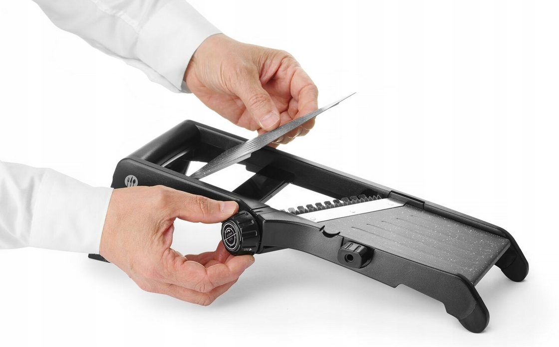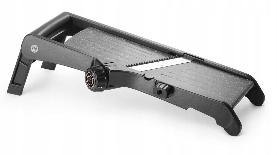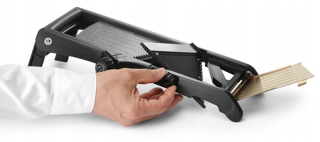 - , оснащені додатковою, змальованою, широкою ногою - високою комфортом, ви можете подрібнити овочі, тримаючи мандоллін або встановити овочі у руці або встановити овочі. Я перебуваю на прилавку під кутом 45 °