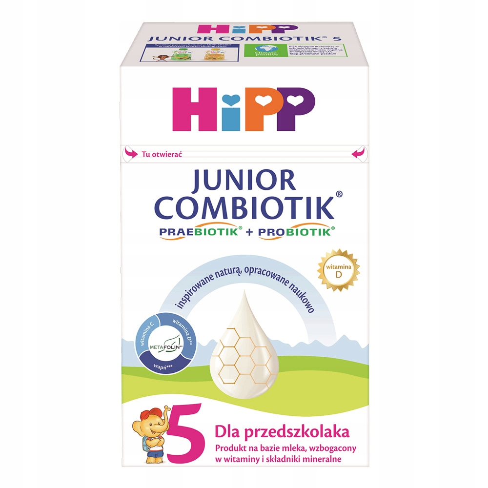 HIPP Junior Combiotik 5 • для використання після 30 місяців • містить поживні речовини, адаптовані до потреб маленьких дітей • містить унікальну комбінацію інгредієнтів: · PRAEBIOTIK - пребіотичні харчові волокна · PROBIOTIK - природні культури молочнокислих бактерій • також містить залізо та вітаміни, у тому числі вітамін D, необхідний для гарного засвоєння кальцію