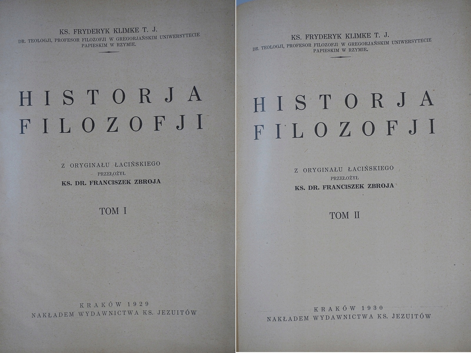 HISTORIA FILOZOJI t. 1,2 FRYDERYK KLIMKE FILOZOFIA