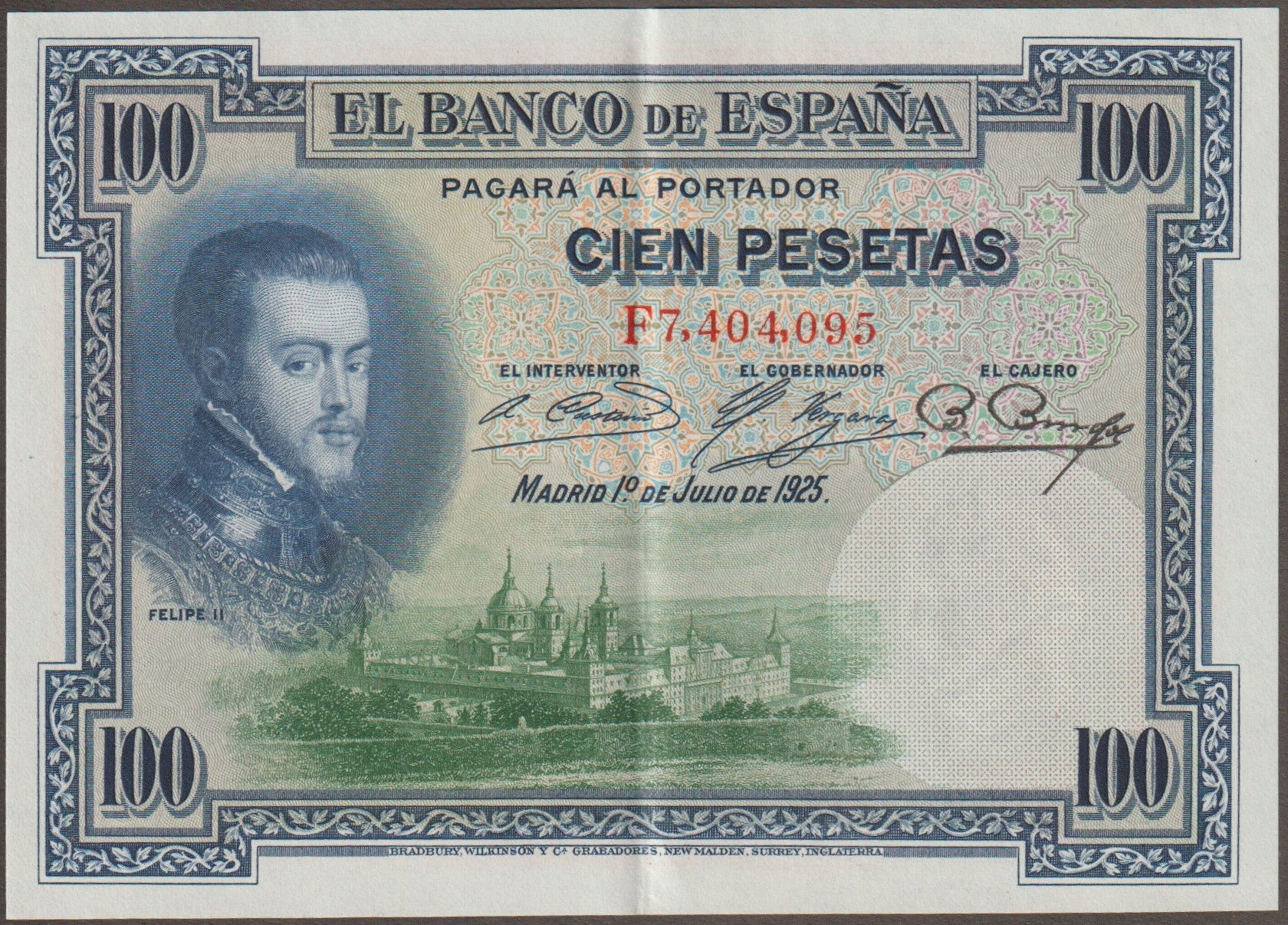 Hiszpania 100 peset 1925 - król Filip II - F7