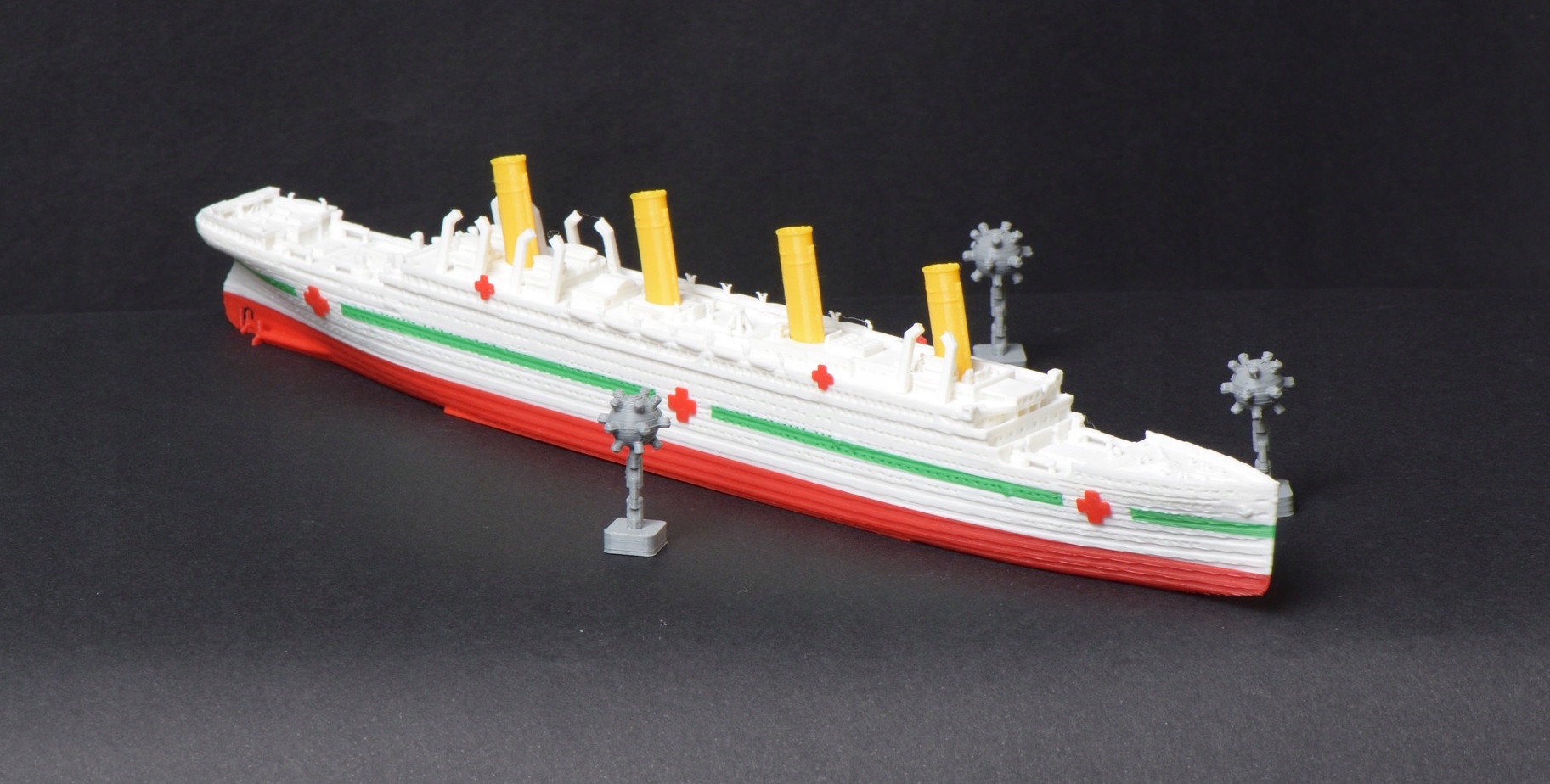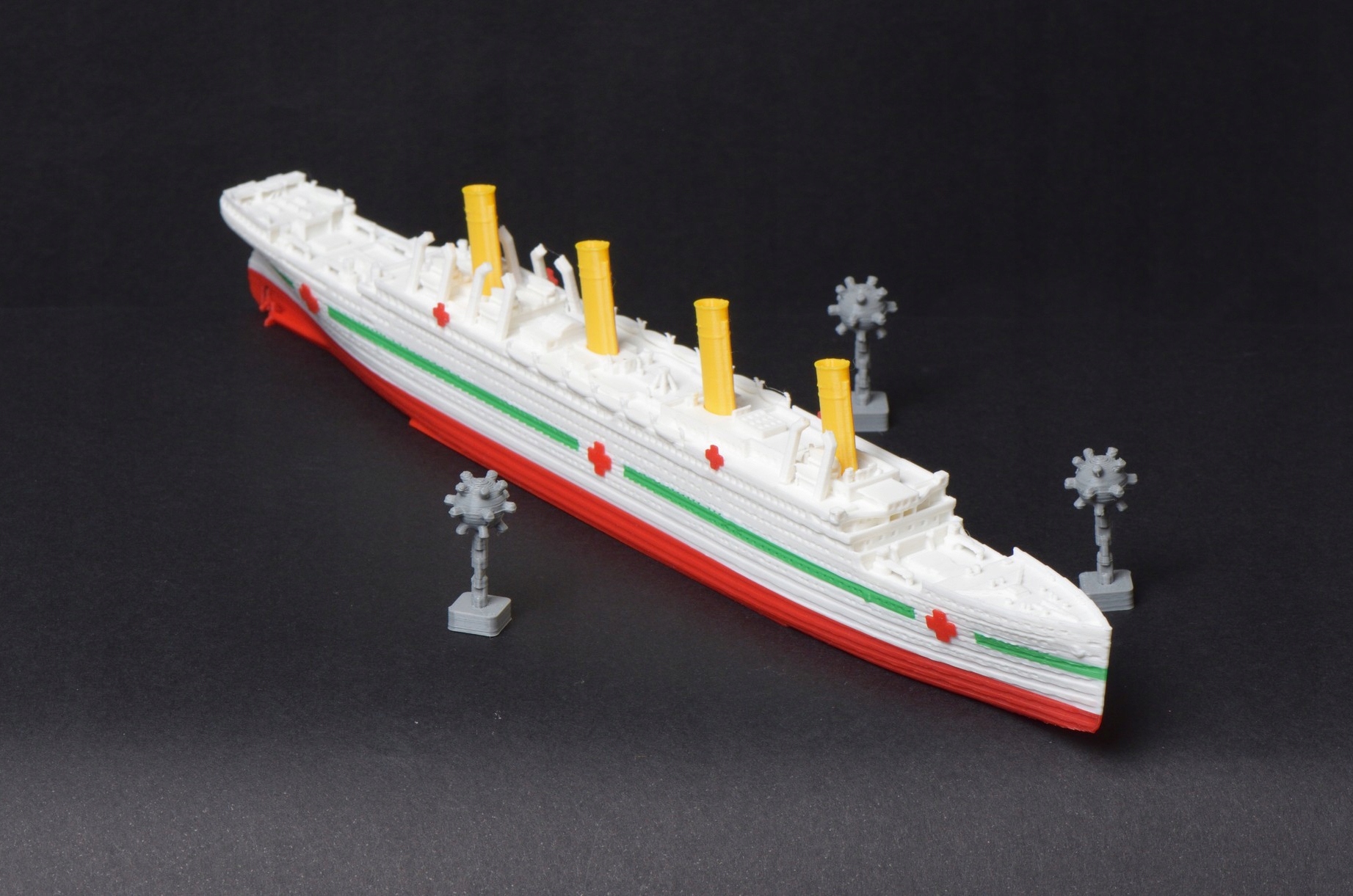 ️ 🛳 модуля HMHS Британська, виготовлена в технології 3D -друку в шкалі 1: 1000, з оригінальним лікарняним кораблем світової війни I. Елементи вбудовані в нижню частину корабля - завдяки якому він ідеально поєднується з магнітною базою!