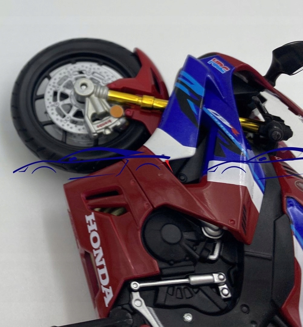 Модель мотоцикла Honda характеризується увагою до деталей. Має рухомі елементи; Бічна нога, колеса, рульове колесо, задній гойдалки.