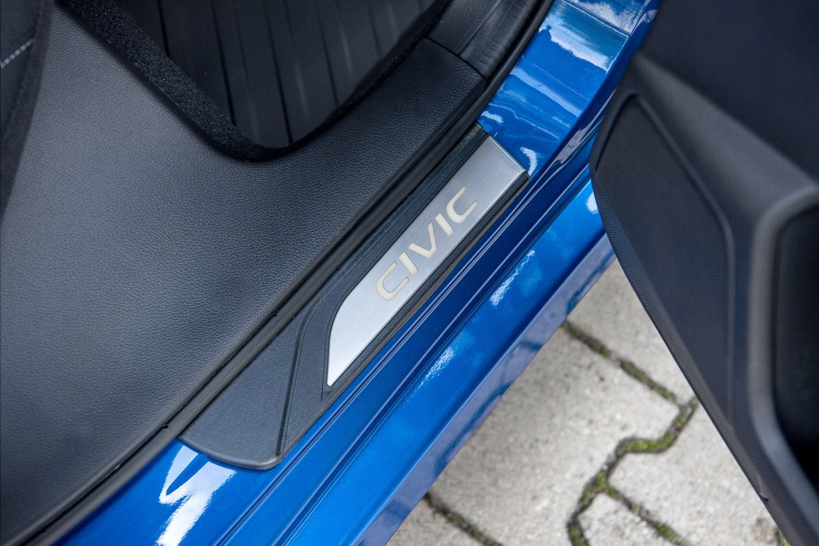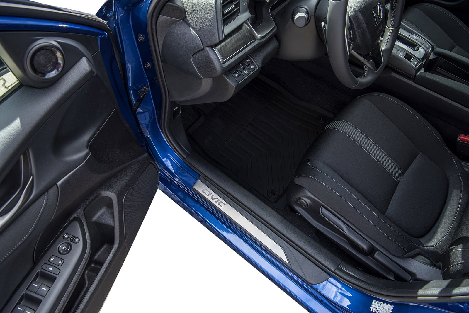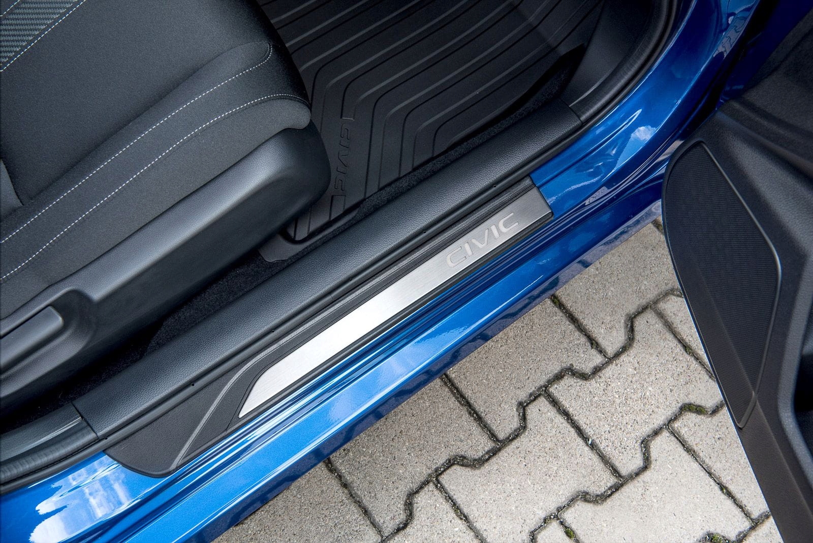 Планки кріпляться на пофарбовані частини внутрішніх порогів. Вони доповнюють внутрішню лінію дверей і надають поріжку спортивно-елегантний вигляд. Дана модель привертає увагу декоративним підсвіченим написом CIVIC. Завдяки вбудованому світлодіодному освітленню елемент не тільки підкреслює сучасний стиль автомобіля, але й підсвічує зону порогів, полегшуючи посадку та вихід.