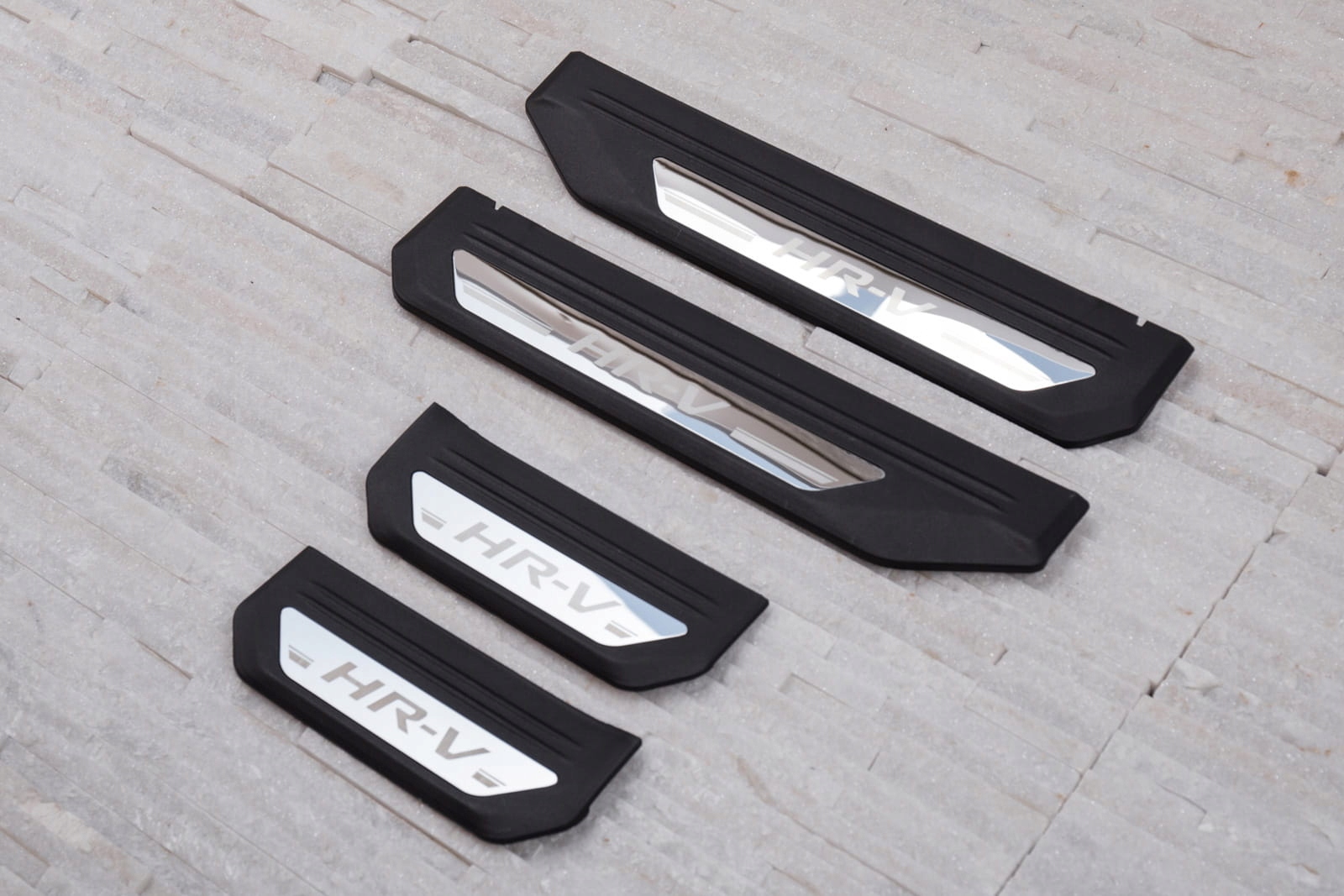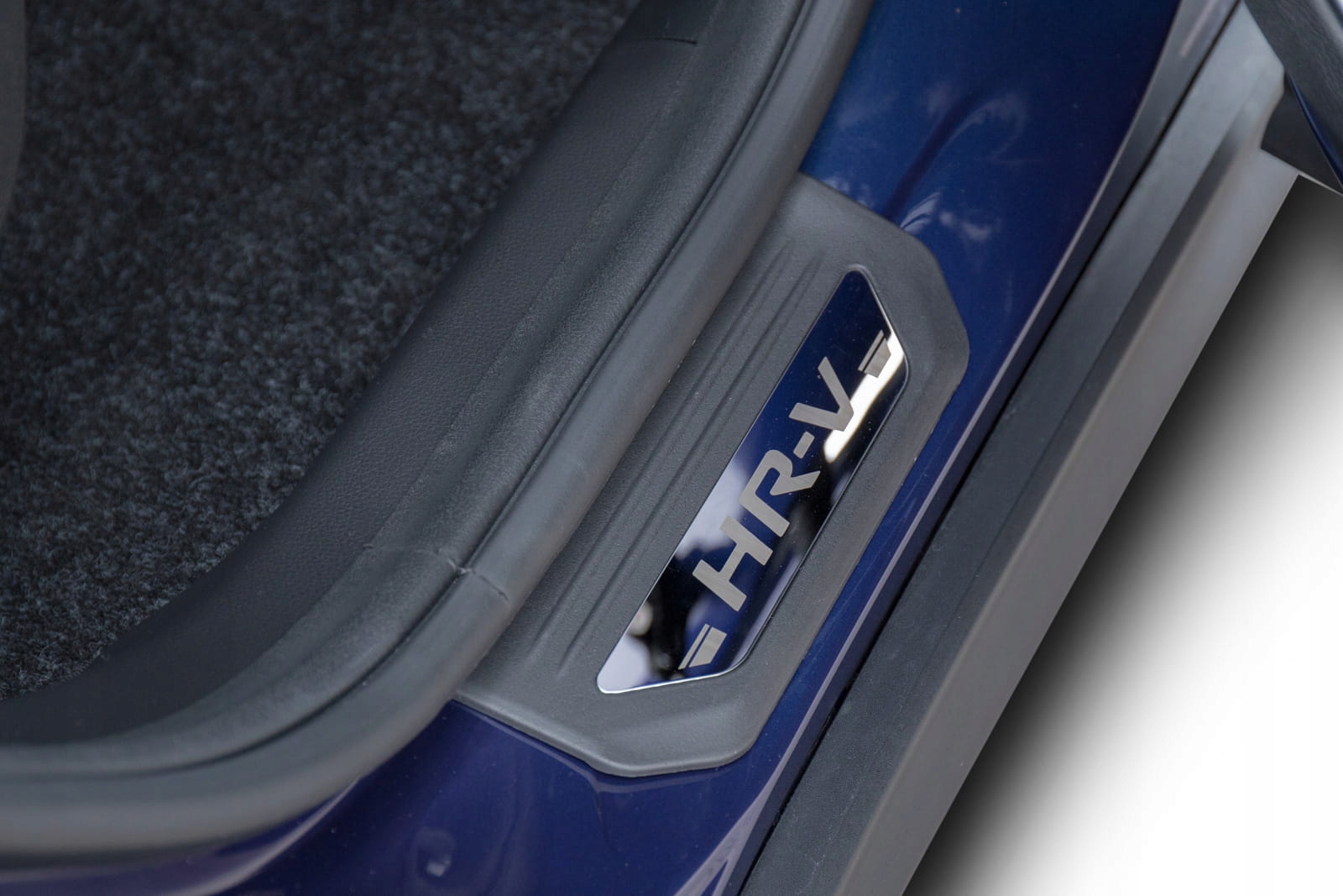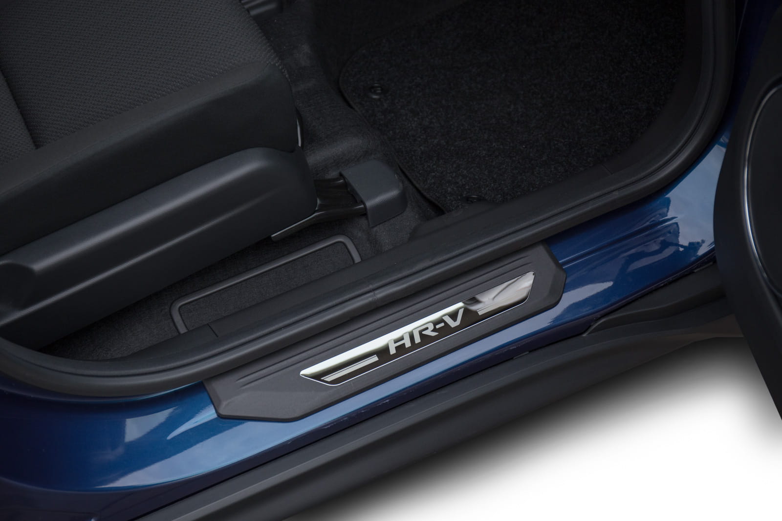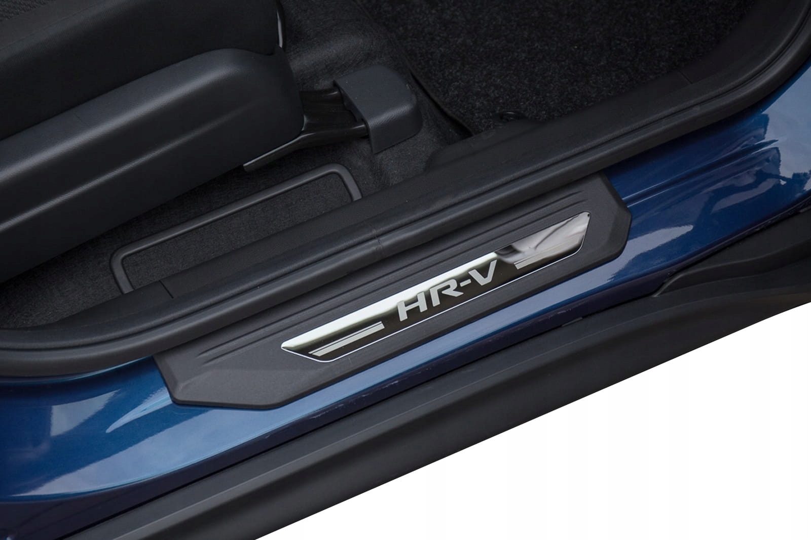 Планки кріпляться на пофарбовані частини внутрішніх порогів. Вони доповнюють внутрішню лінію дверей і надають поріжку спортивно-елегантний вигляд. Ця модель привертає увагу декоративним написом HR-V на панелі з полірованої нержавіючої сталі.