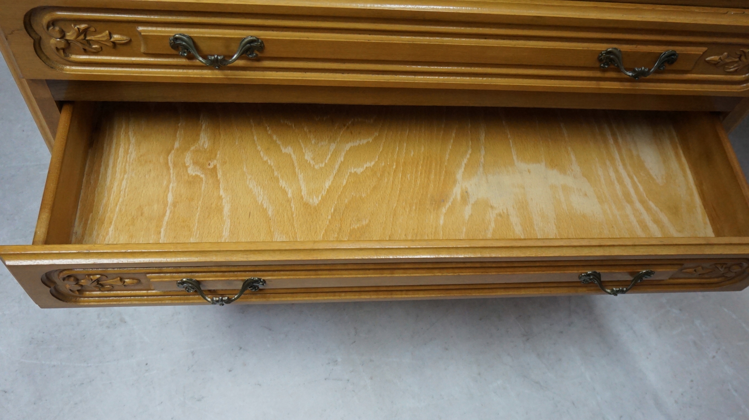 Нижче три великі ящики. Фронталі ящиків вкриті тонким різьбленням.