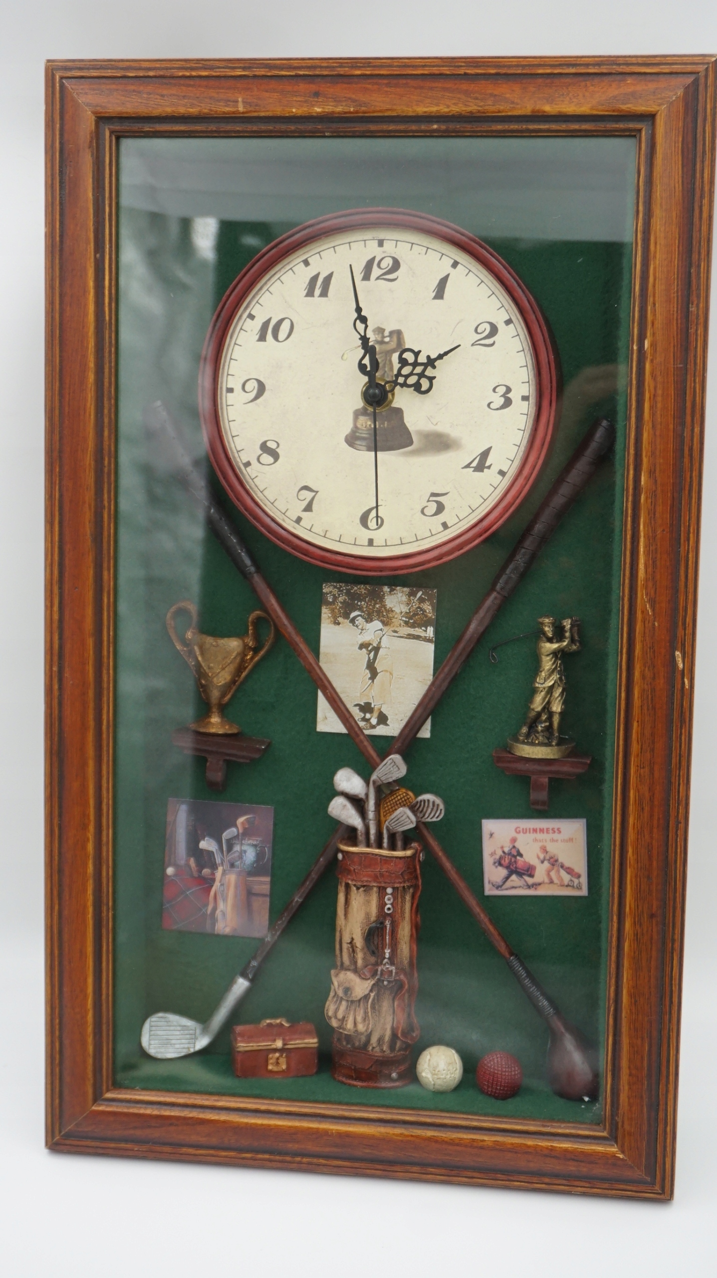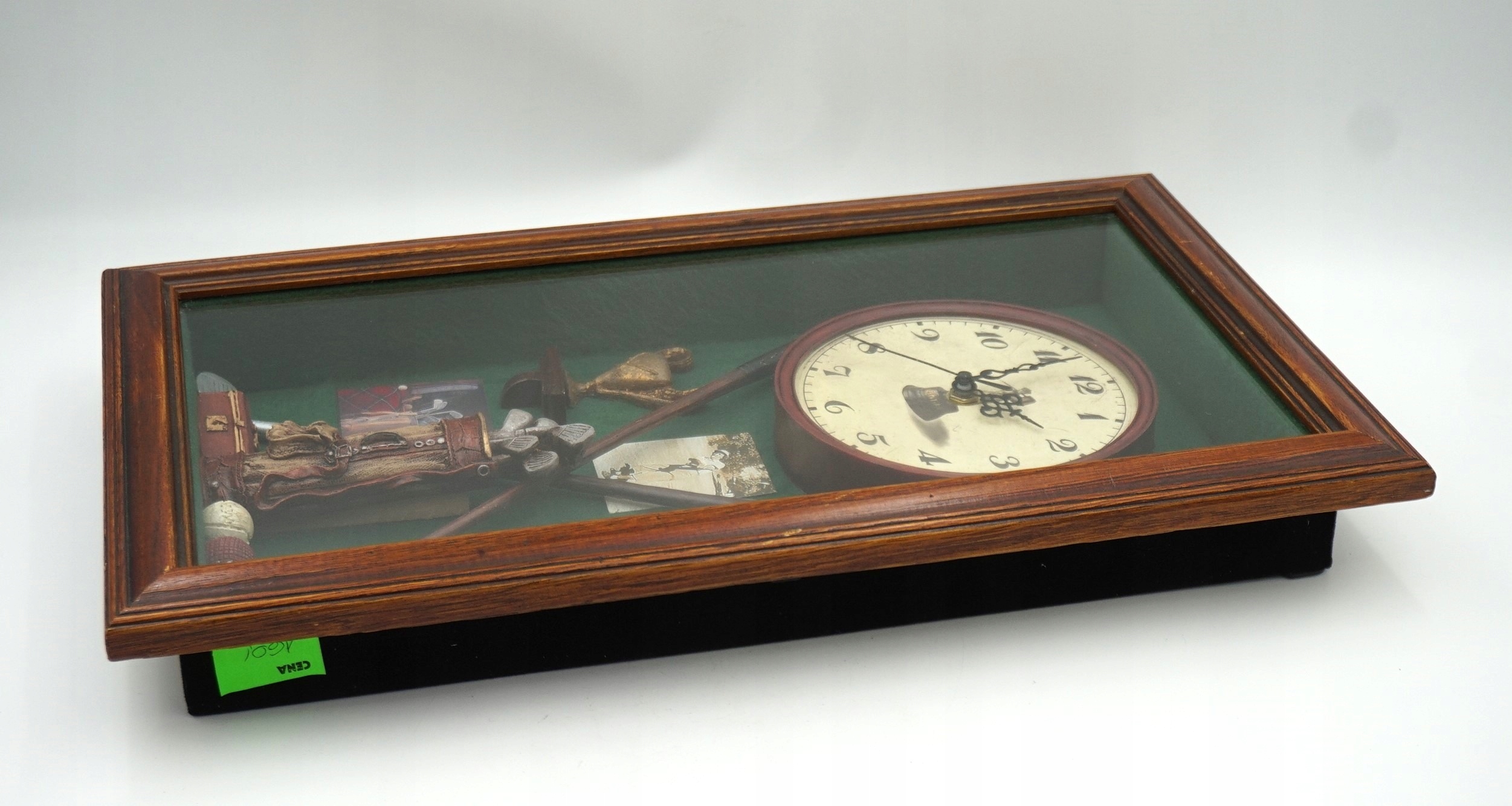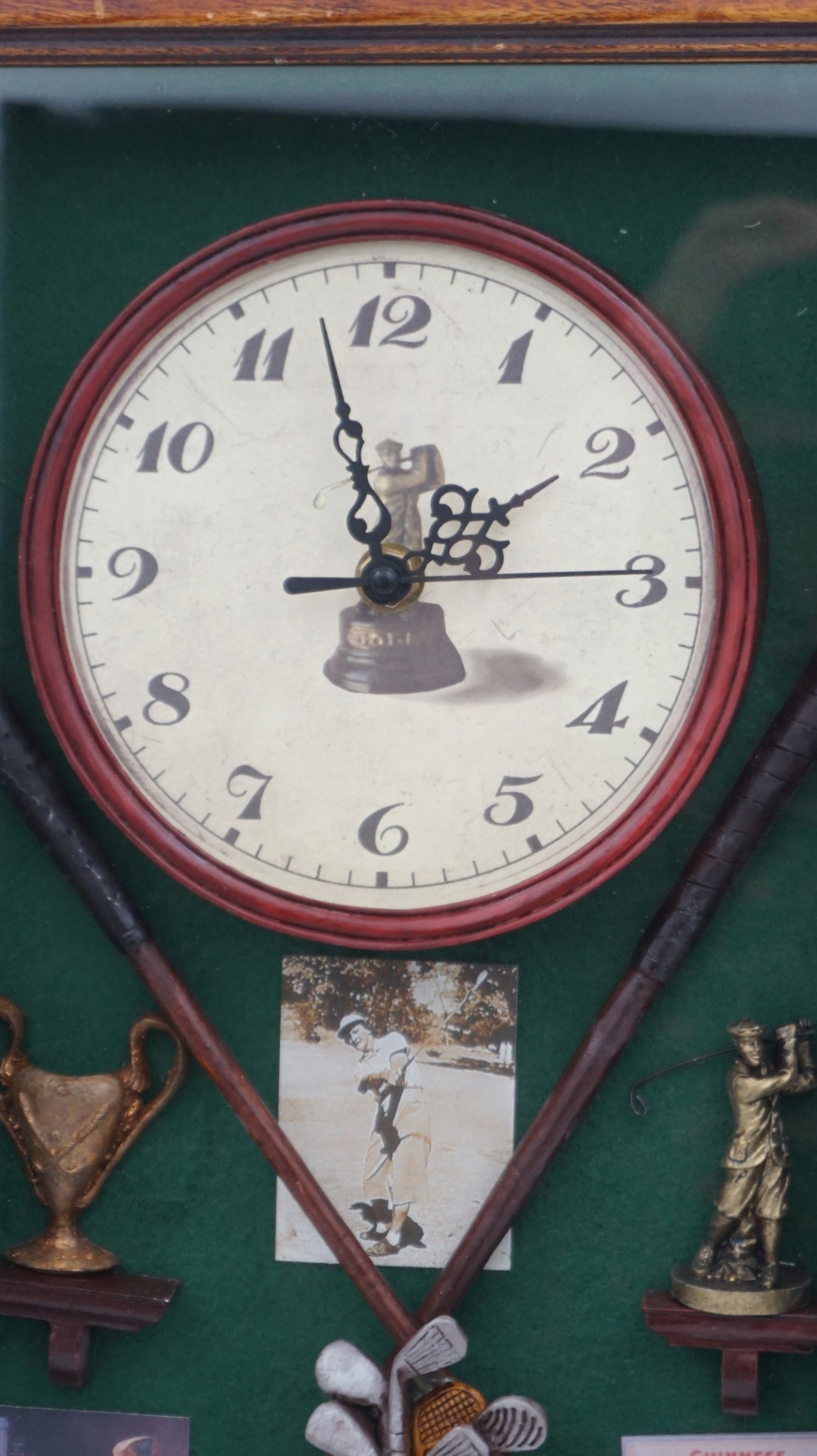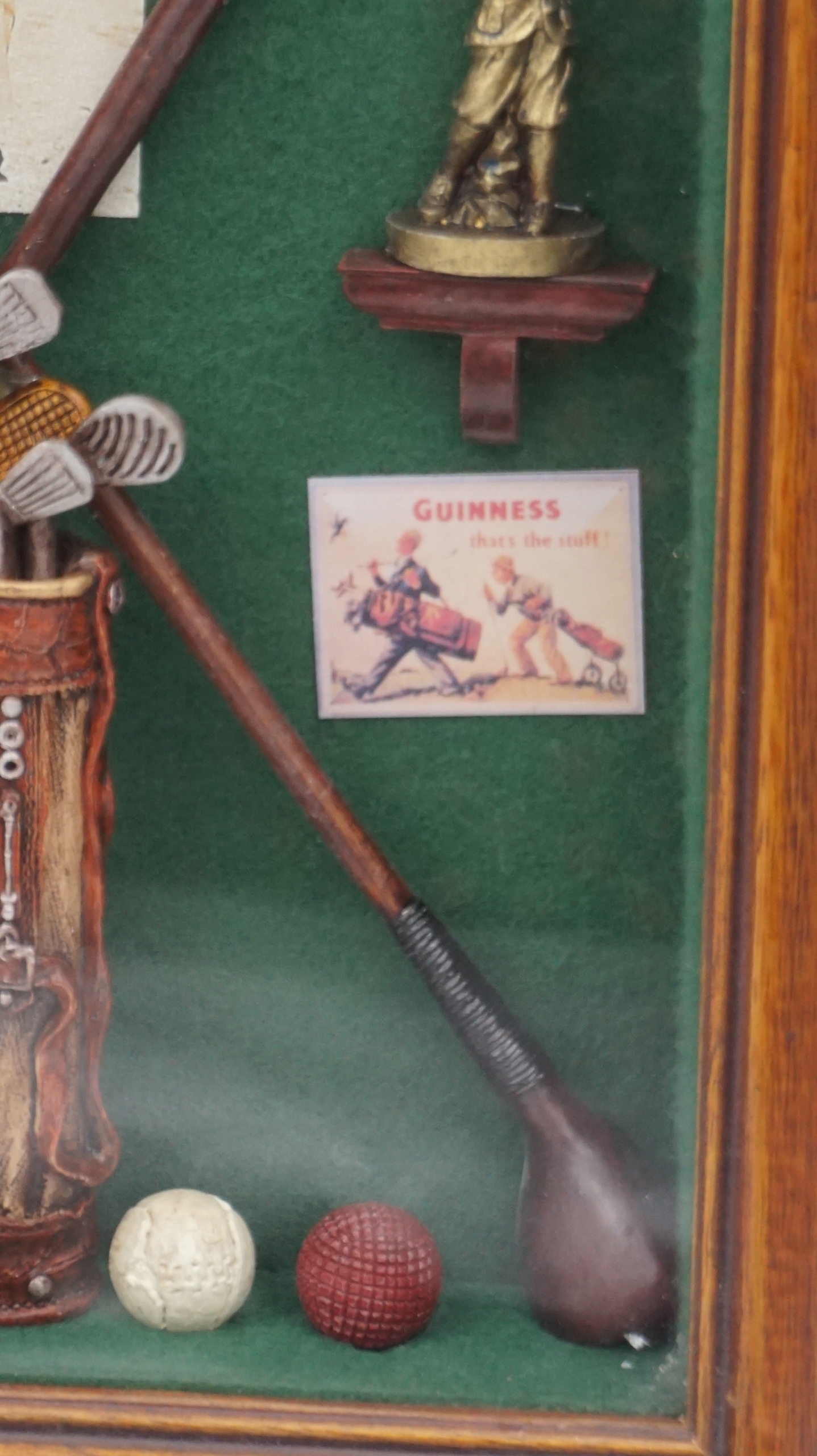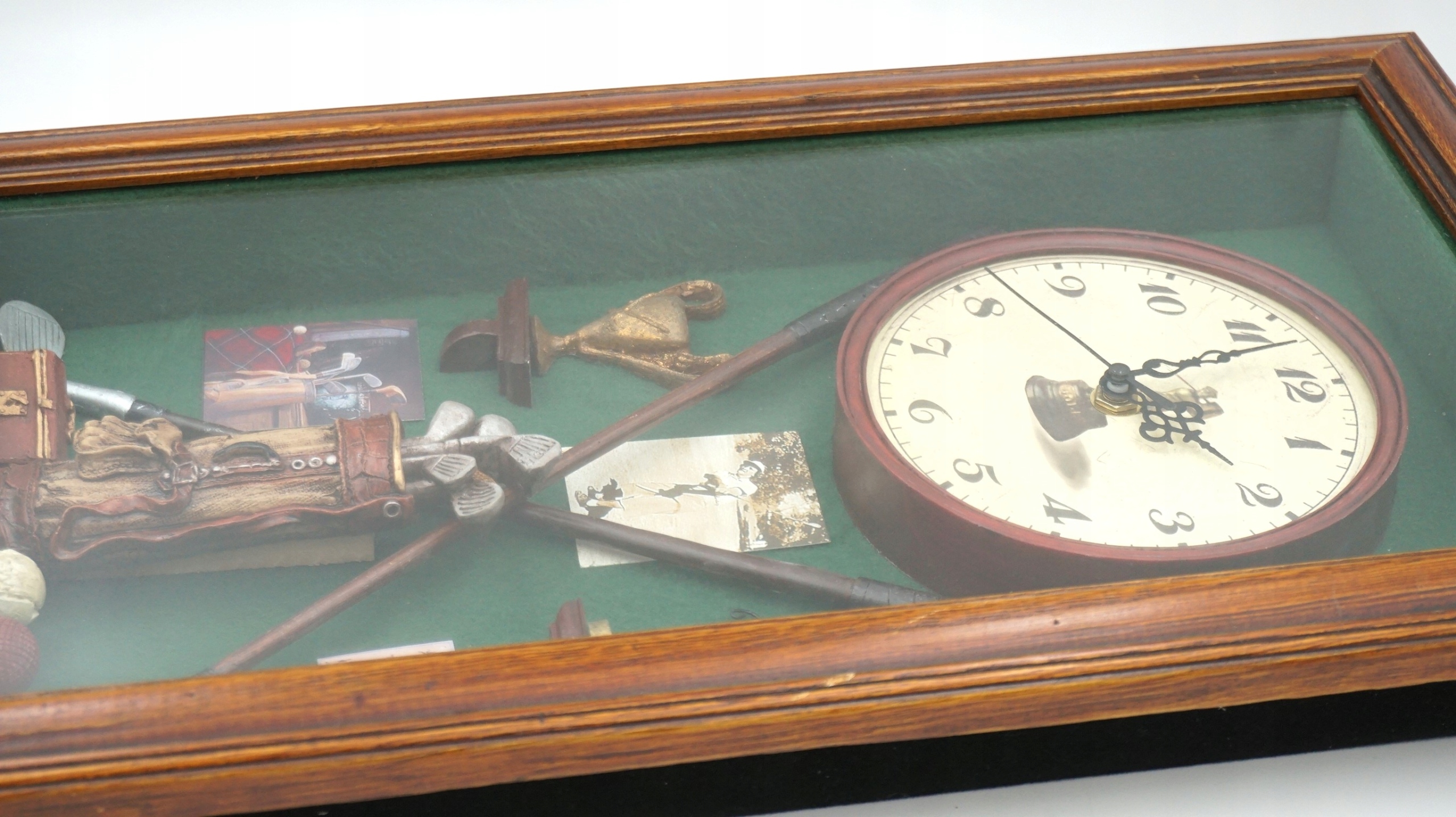 Дерев'яну вітрину, всередині елементи, пов'язані з гольфом