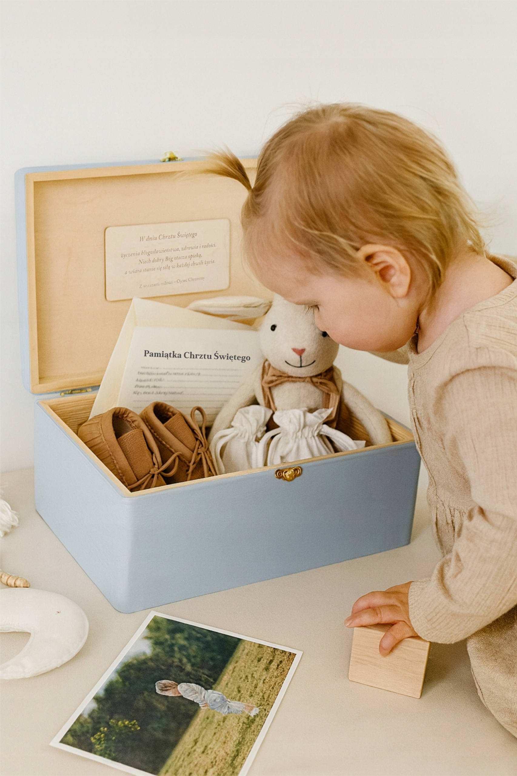 У день хрещення всі шукають подарунок, який матиме справжнє значення . Наша коробка спогадів у кольорі пильно -синій - це не звичайний подарунок, а емоційна скарбниця .