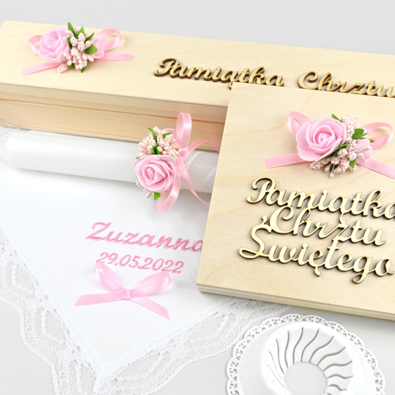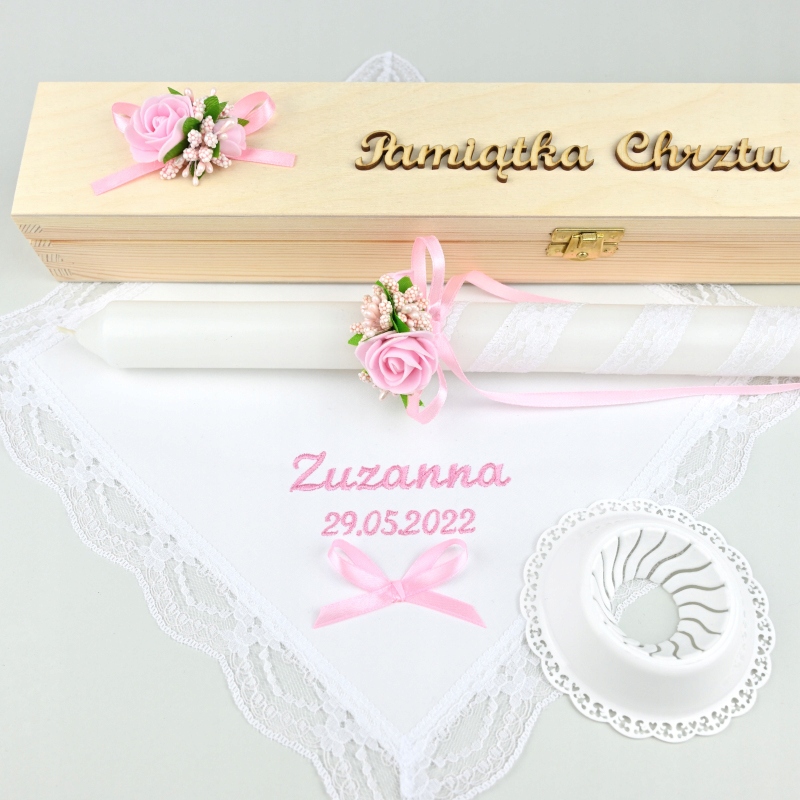 Пропонуємо вашій увазі гарний, ефектний і дуже дівочий набір для хрещення, який запам'ятається гостям і рідним. Після церемонії, дорогі матері, ви можете зберігати тканину та свічку в дерев’яній коробці, яка доповнює тканину та свічку. Коробка для зберігання ідеально захистить сувеніри з хрещення і змусить вас і вашу дитину з теплотою згадувати ці незабутні та особливі моменти. :)