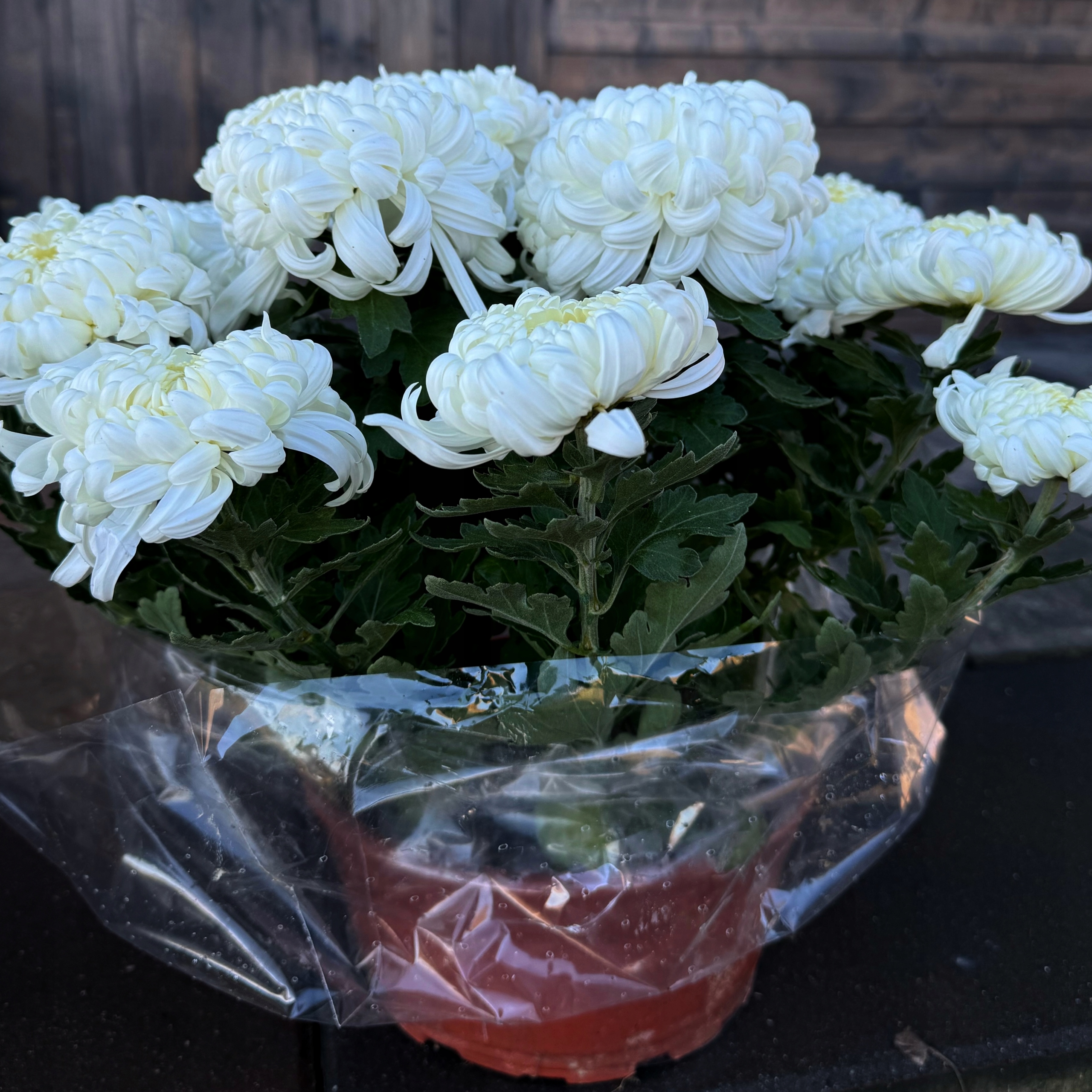 Хризантема має багато нерозвинених квіткових бруньок. Ідеально підходить для могили та цвинтаря.